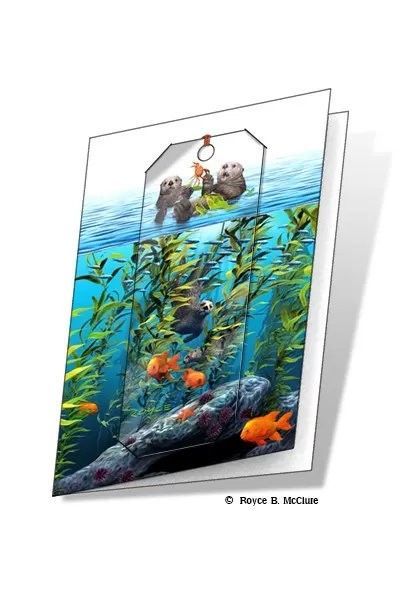 Grußkarte mit 3D Lesezeichen Seeotter - Sea Otters