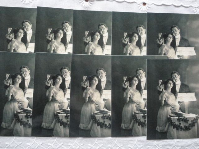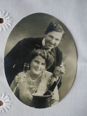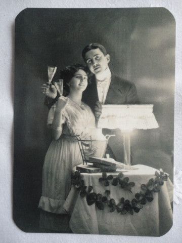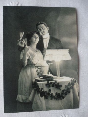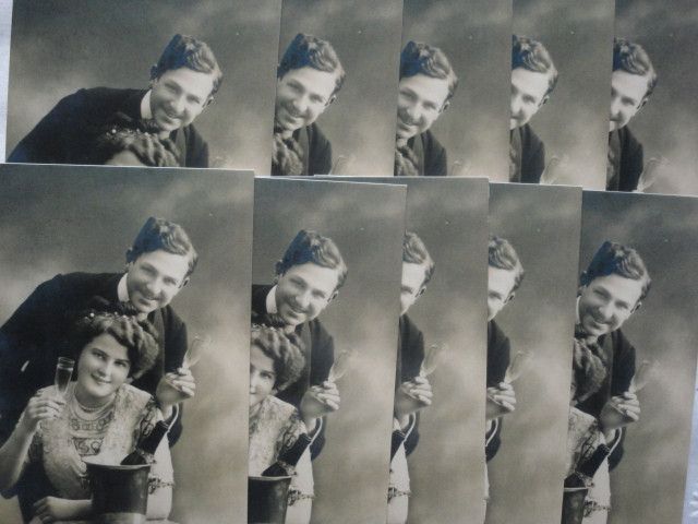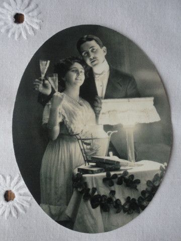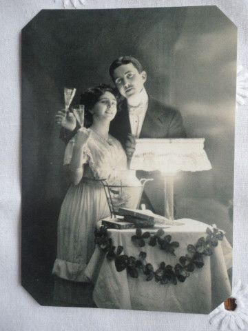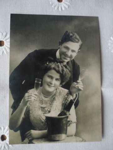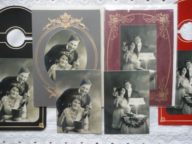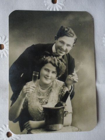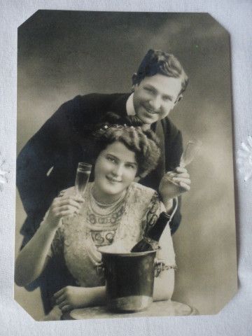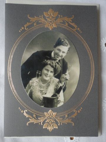Grußkarte Sticker Topper Geschenkanhänger Glückwunsch Sekt Feierlaune Paar Nostalgie