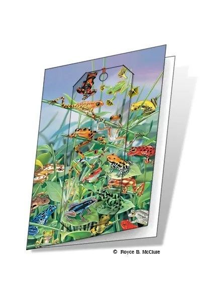 Grußkarten mit 3D Lesezeichen - Bunte Frösche / Hanging Around