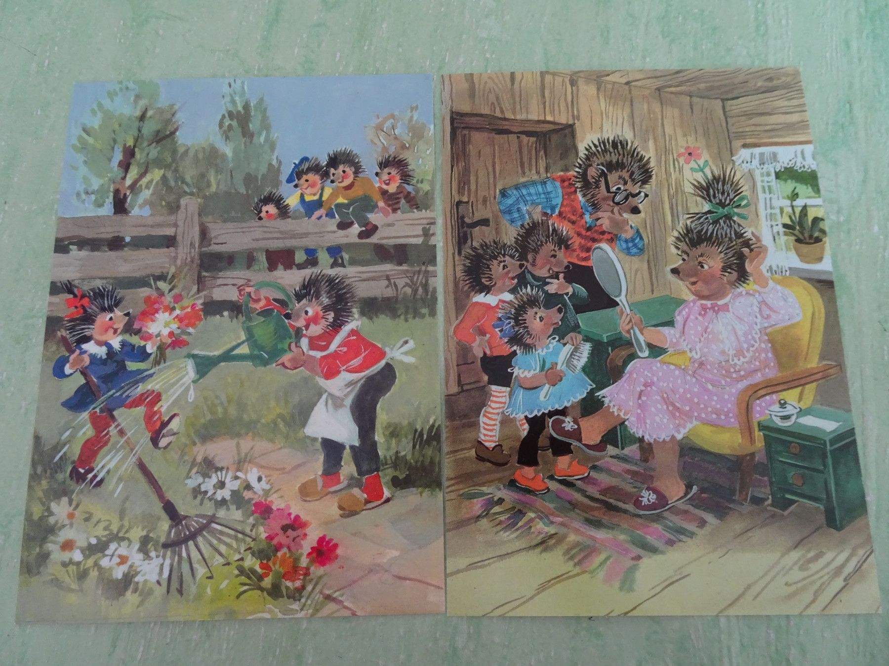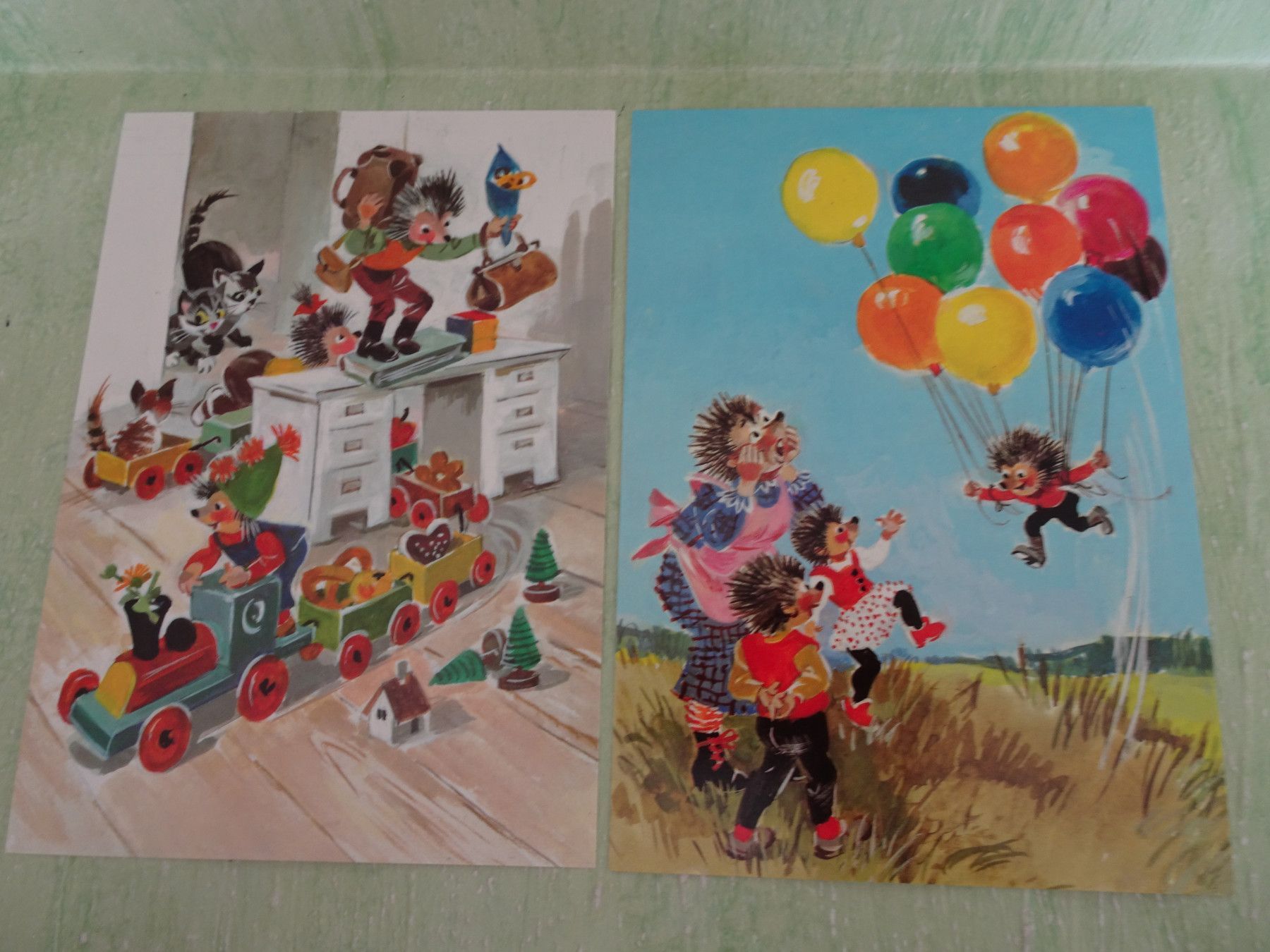 Grußkarten Postkarten AK Planet Verlag Berlin Mecki vermenschlichte Tiere Igel DDR