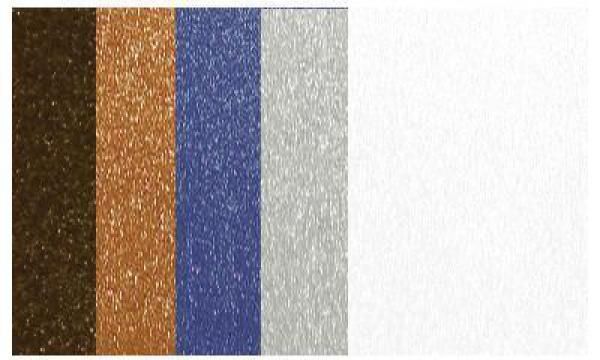 Dunkelblau, Hochweiß, Kupfer, Silber, Elfenbein und Gold
