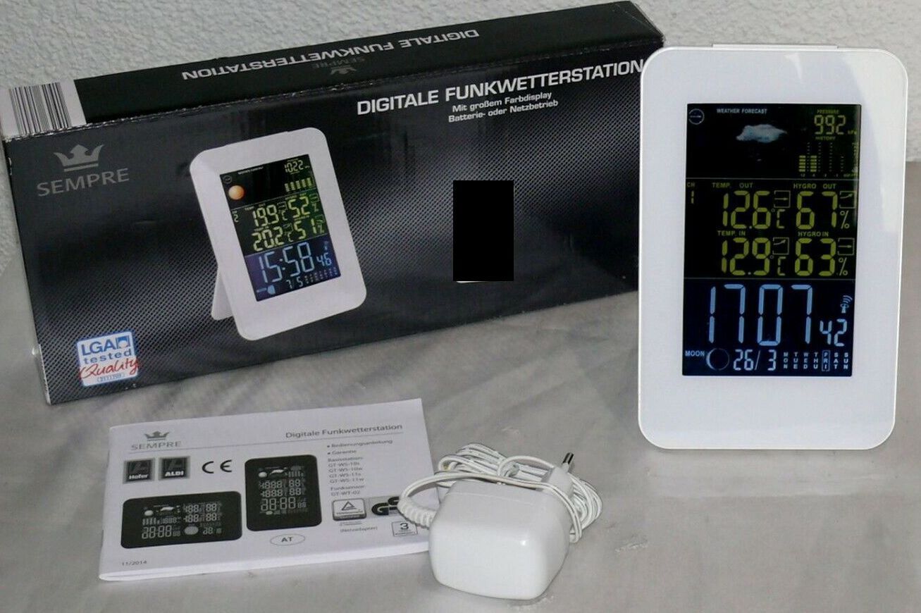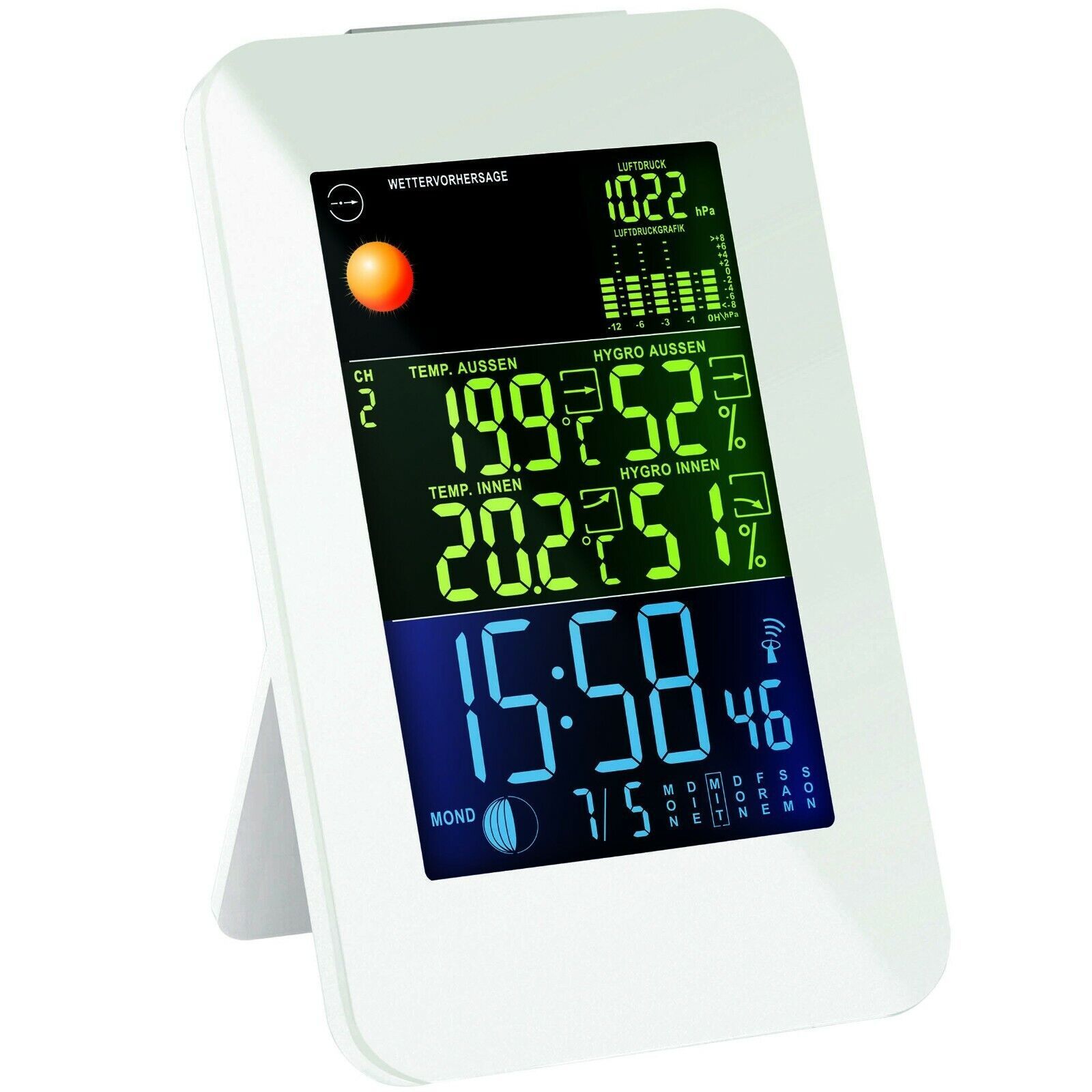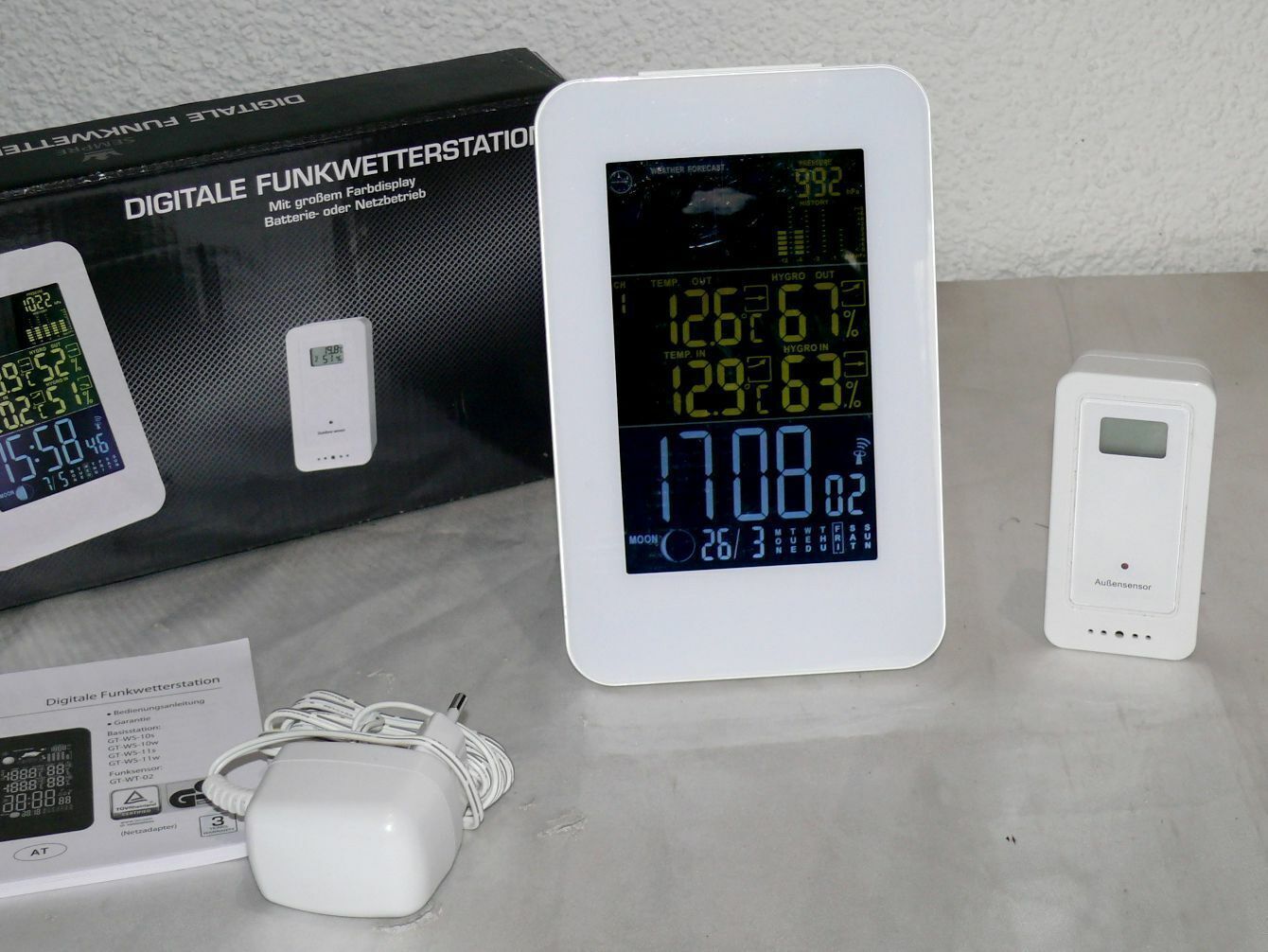 GT-WS-10W Digitale Funk Wetterstation Farbdisplay Wettervorhersage Funkuhr Mond
