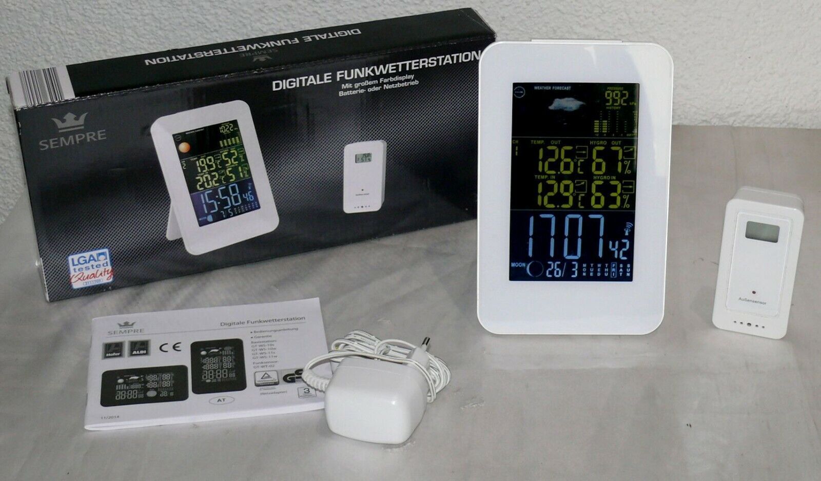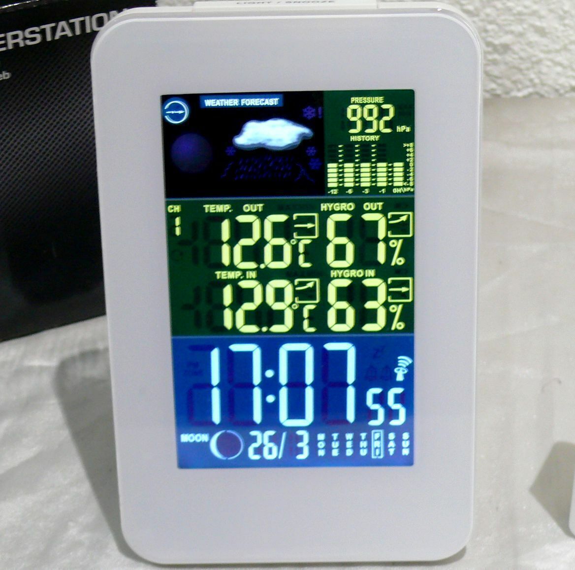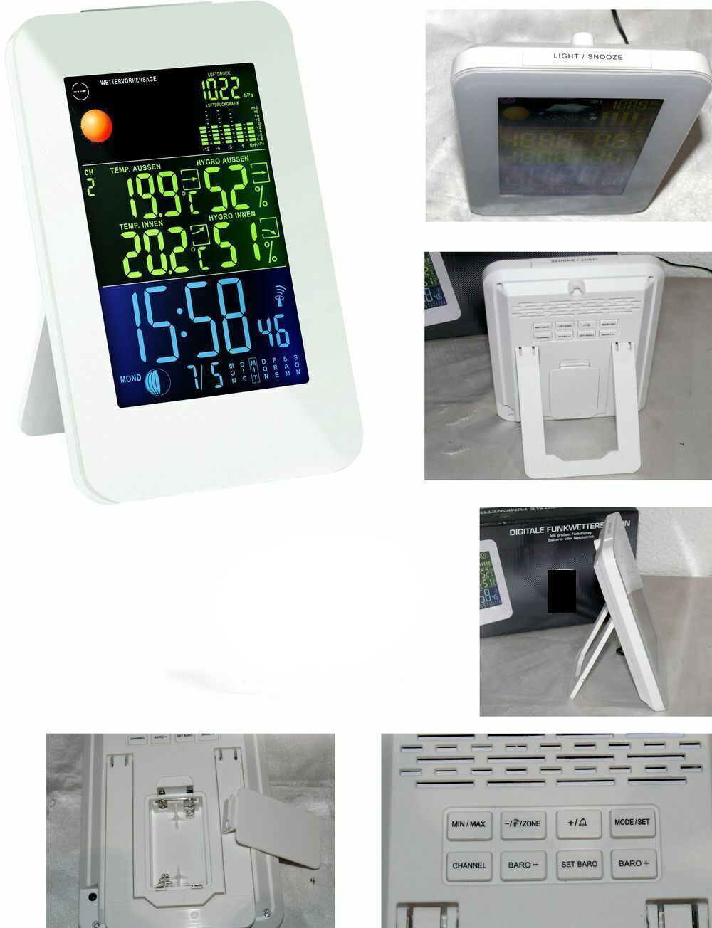 GT-WS-10W Digitale Funk Wetterstation Farbdisplay Wettervorhersage Funkuhr Mond