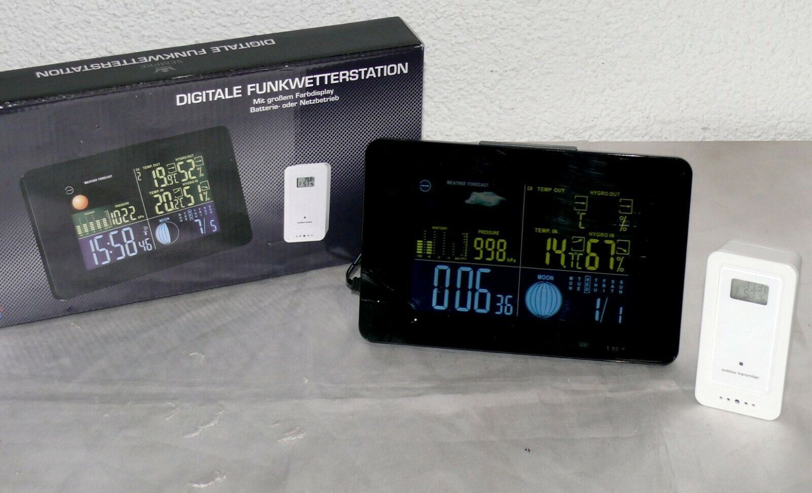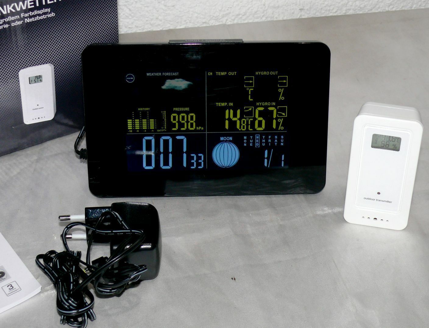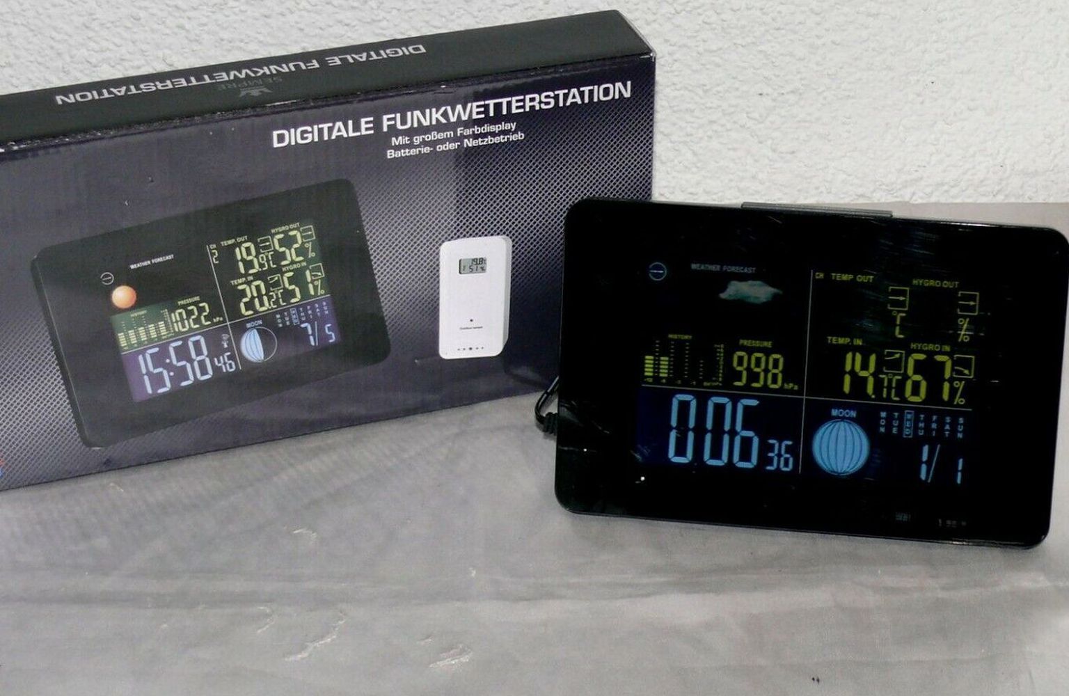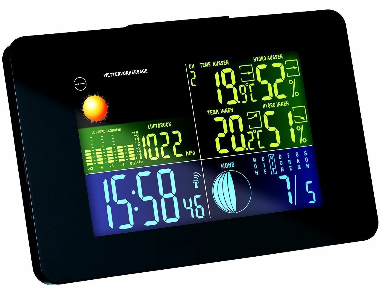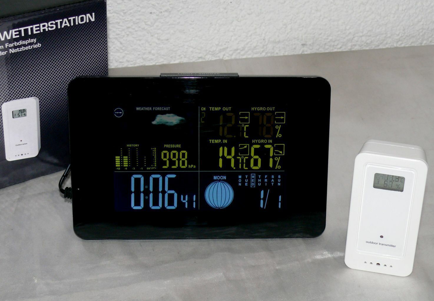 GT-WS-11S Digitale Funk Wetterstation Farbdisplay Wettervorhersage Funkuhr Mond