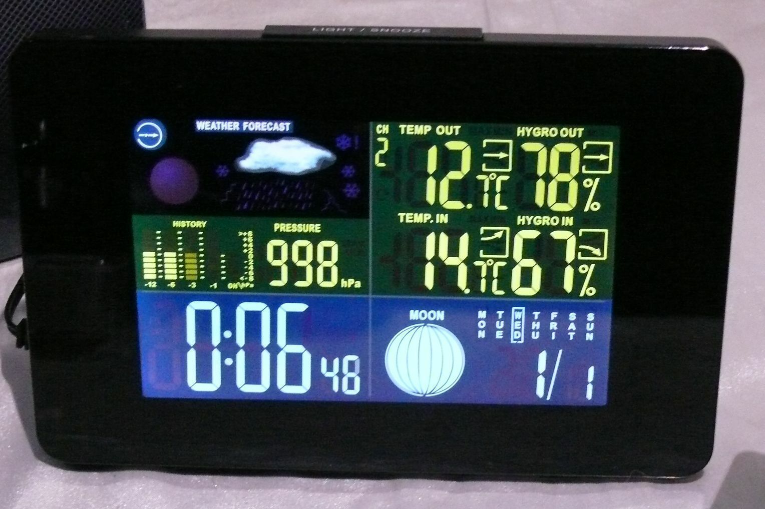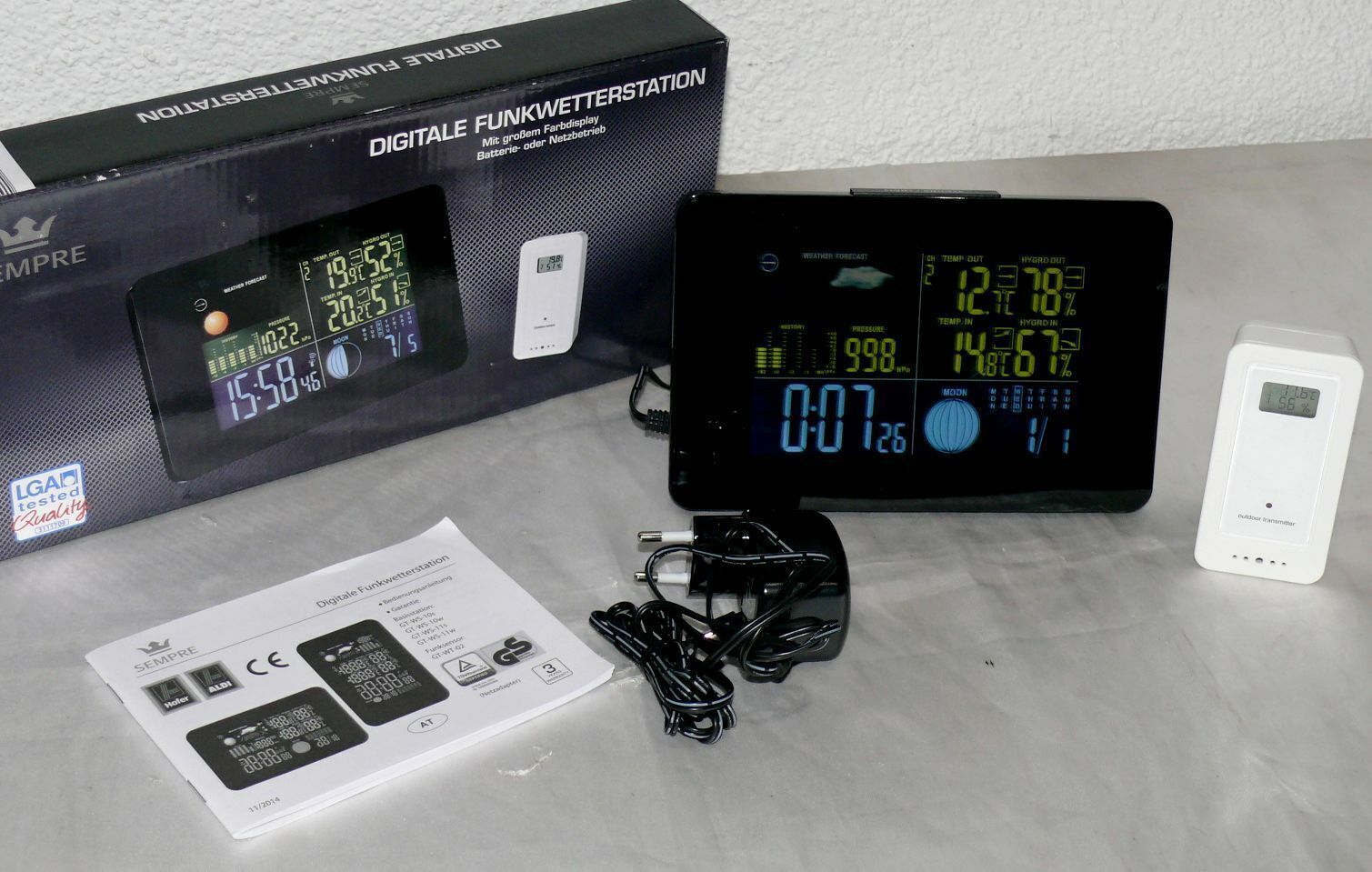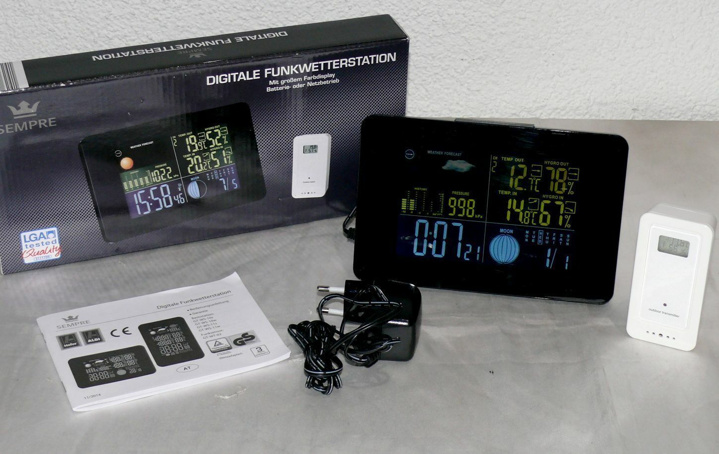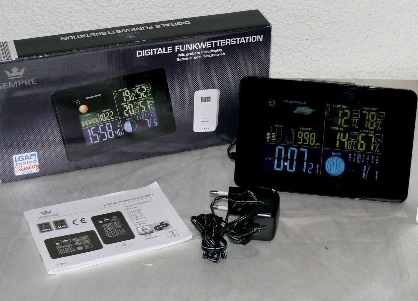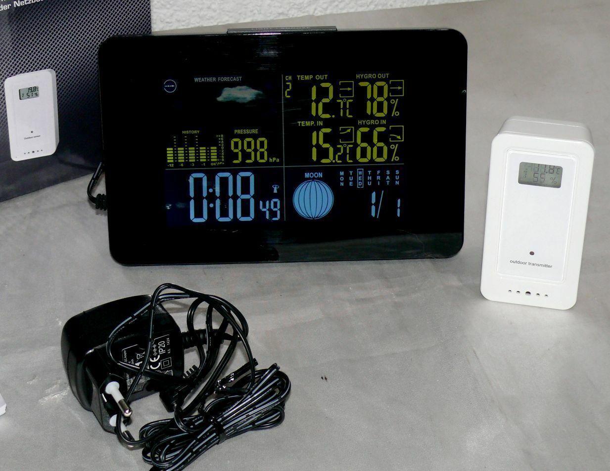 GT-WS-11S Digitale Funk Wetterstation Farbdisplay Wettervorhersage Funkuhr Mond
