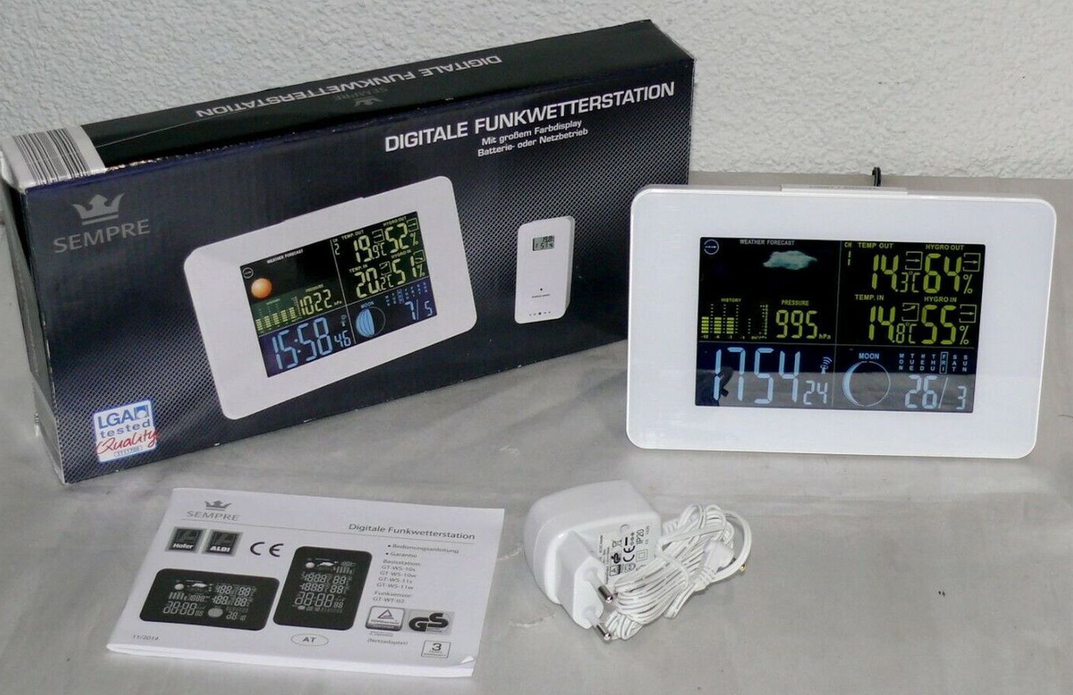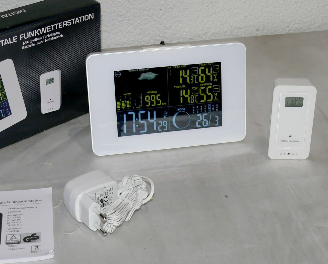 GT-WS-11W Digitale Funk Wetterstation Farbdisplay Wettervorhersage Funkuhr Mond