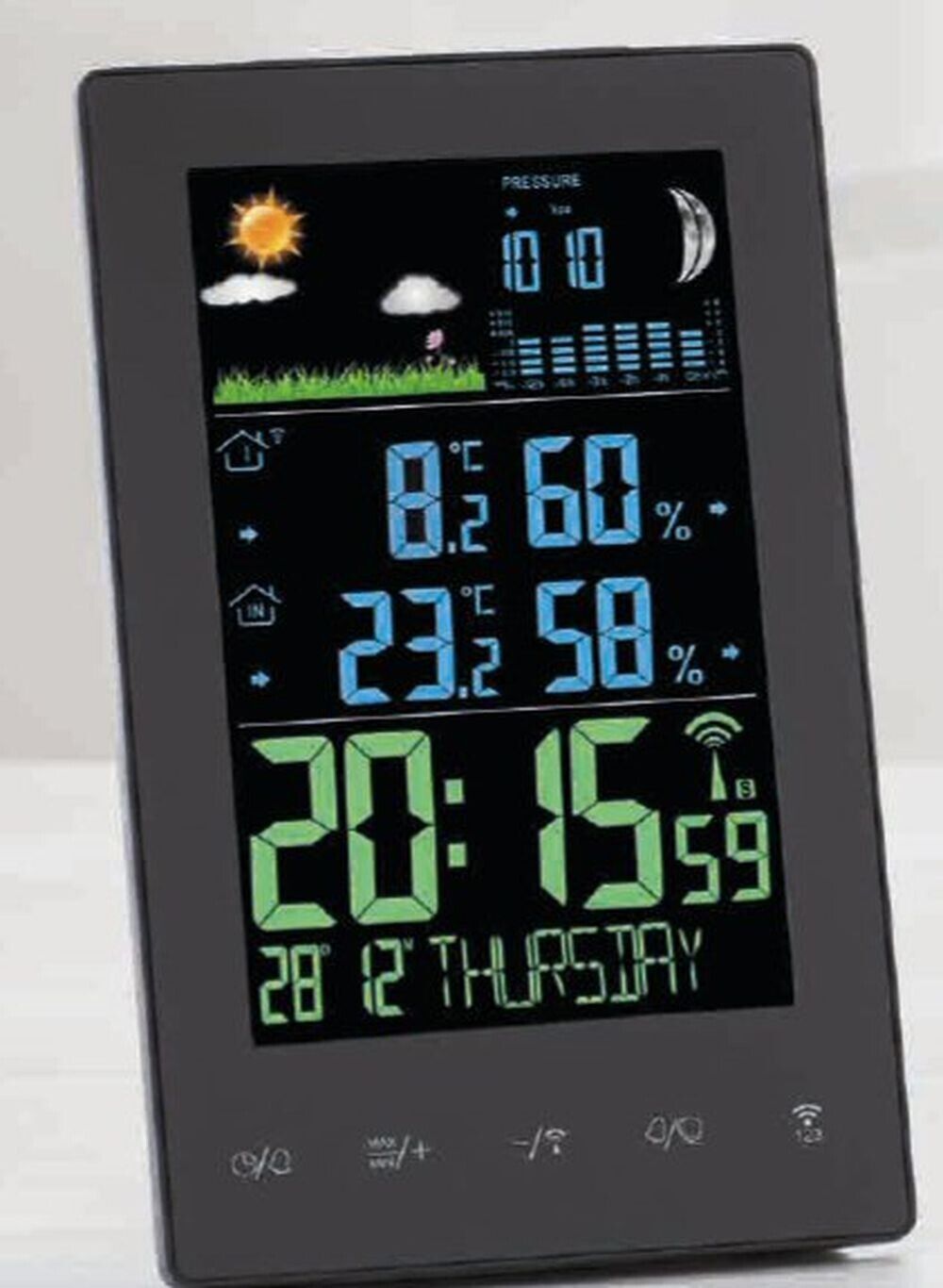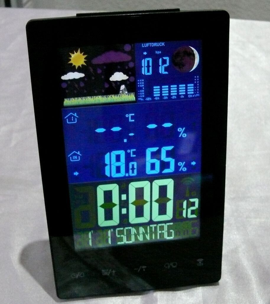 GT-WS-17V Funk Wetterstation Farbdisplay Wettervorhersage Funkuhr Mond Schwaz