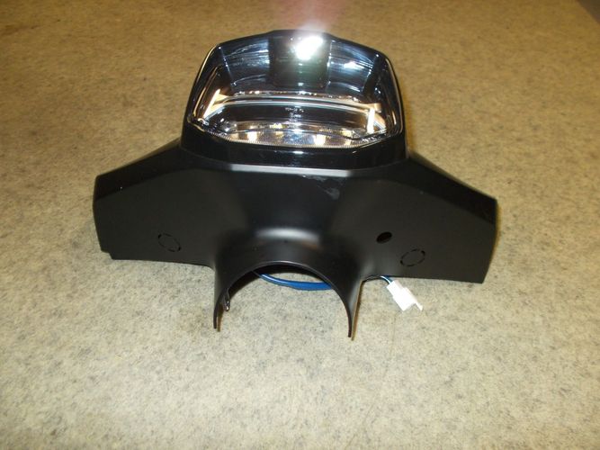 Gebrauchter LED Frontscheinwerfer von einem Motorroller GTS Levanti 50i. Die Lampenverkleidung ist im Lieferumfang enthalten.