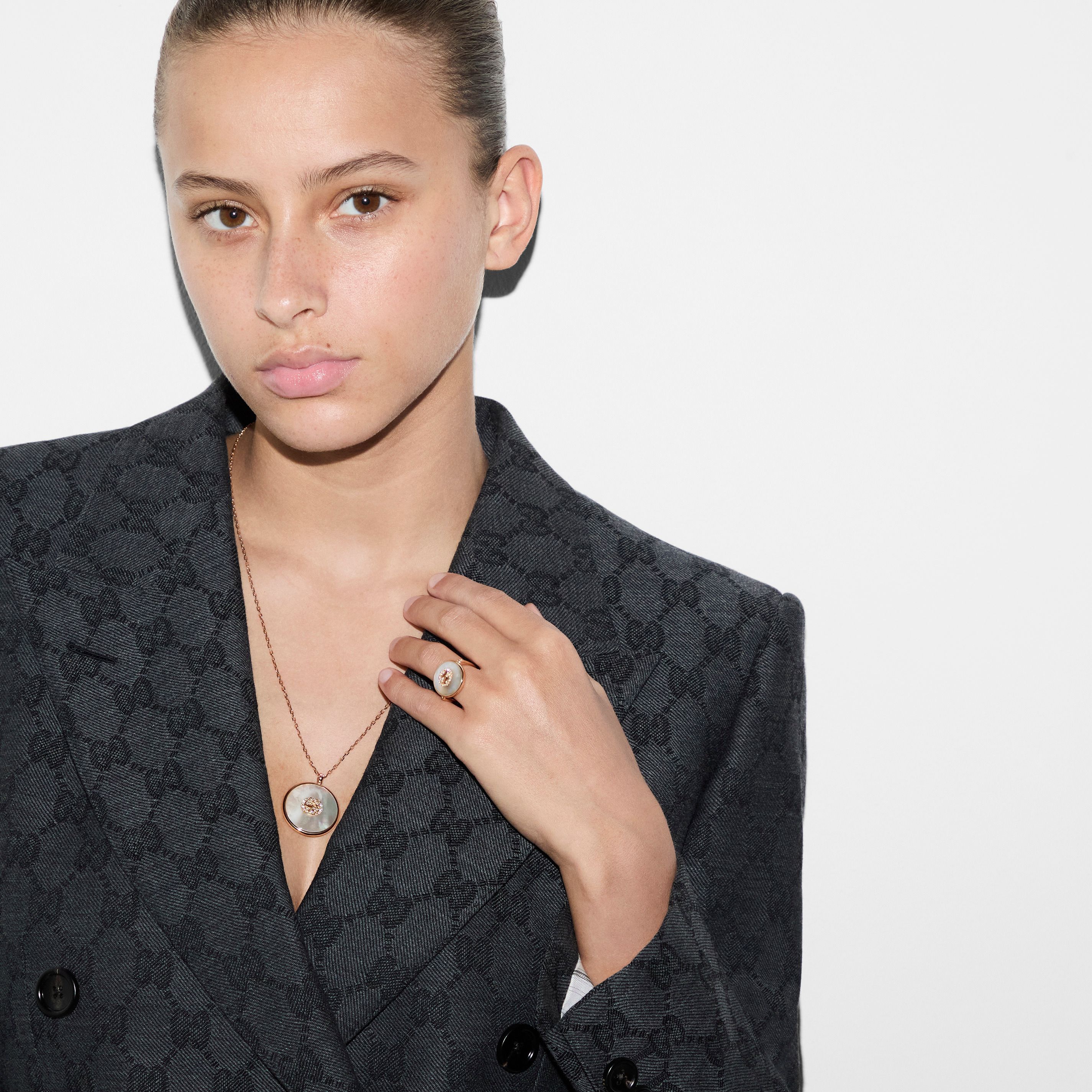 Gucci - YBC786765001 - Gucci Ineinandergreifender Ring aus Roségold, Mopp, Diamanten,