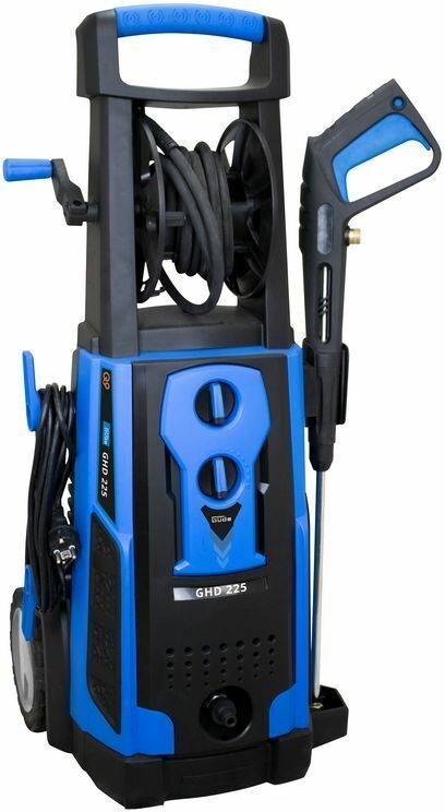 Güde Hochdruckreiniger GHD 225 Beschreibung: • Auto-Stopp System für leichte Bedienbarkeit • Integrierter Reinigungsmittelbehälter • Höhenverstellbarer Teleskopgriff • Große Transporträder • Praktische Halterungen rund um den Hochdruckreiniger für Zubehör, Hochdruckschlauch