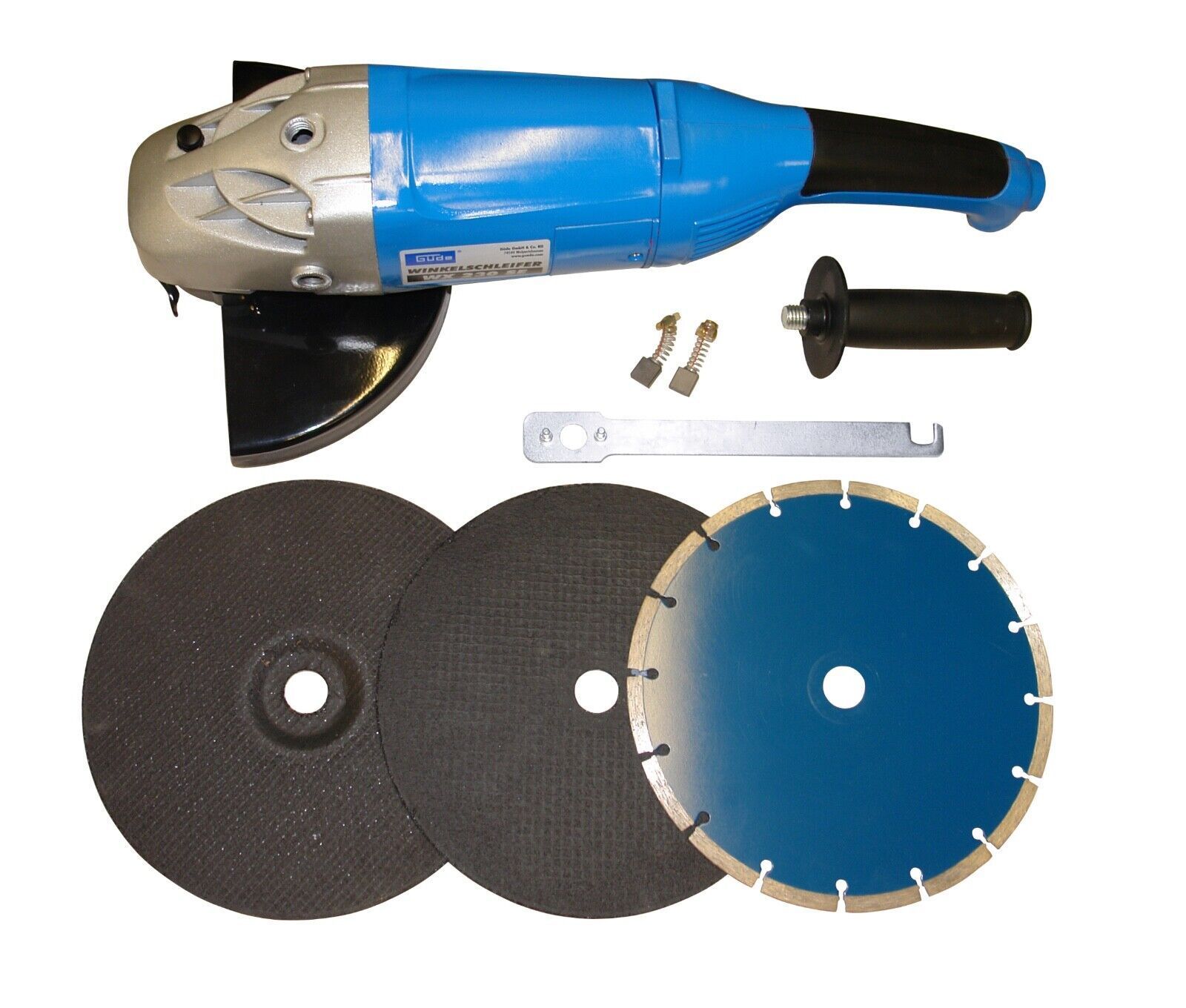 orig. verpackte Neuware - mit Rechnung und ausgewiesener Mehrwertsteuer Profi - Winkelschleifer Güde WX 230 SE (ähnlich dem Foto , jedoch nicht mit Hartmetallscheibe , sondern mit 3 Trennscheiben ) kpl. mit Transportkoffer WX 230 SE Anschluss Frequenz: 230 V 50 Hz Schutzklasse: II Leistung: 2350 W P