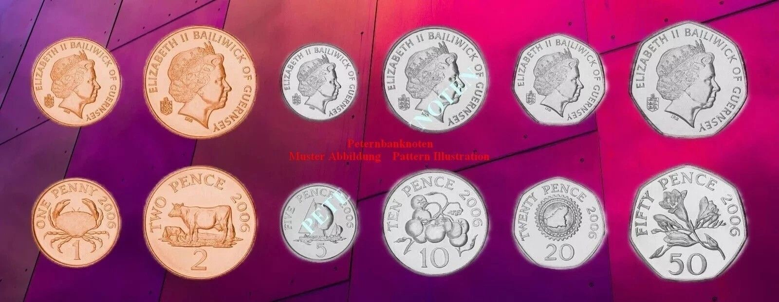Guernsey KMS. 1998-2012 Unc. 6 Münzen 6400#
