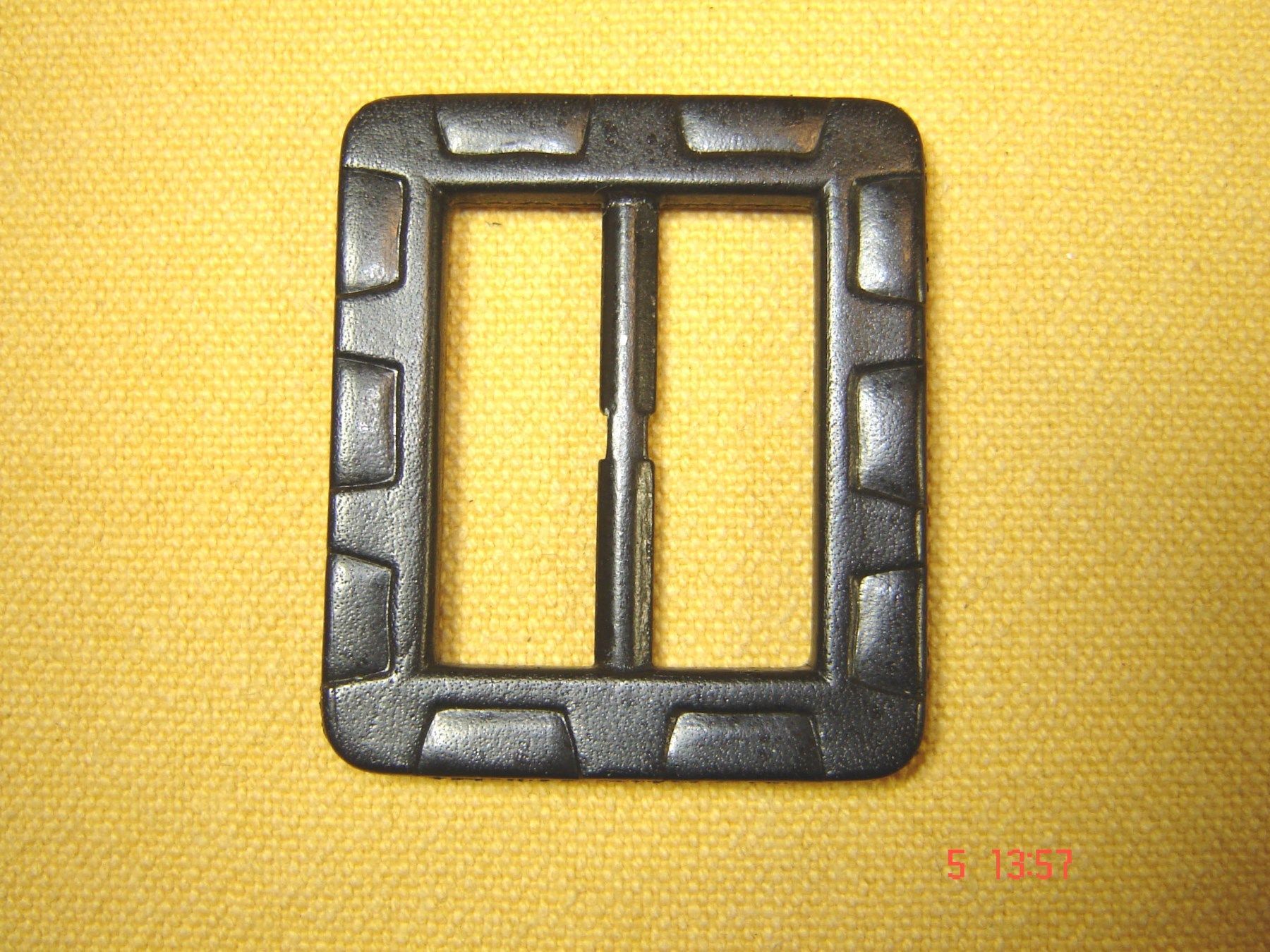 Gürtelschließe 80er Jahre Deko Schnalle Metall Lederbezogen schwarz Vintage
