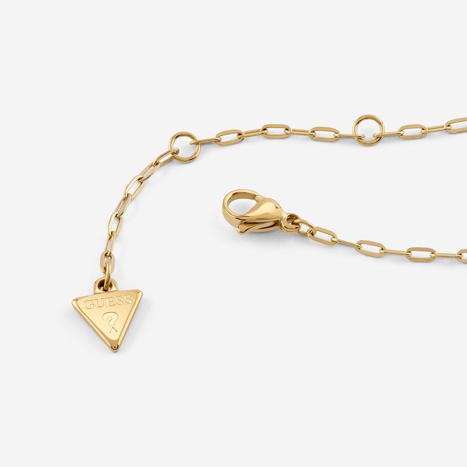 trendige Halskette für Frauen aus der Kollektion By Your Side, aus poliertem Edelstahl, gold ionen-plattiert, Ankerkette, Stärke 2 mm, Länge 40,7 cm (+ 5 cm Verlängerungskette mit Logoplättchen), Herz-Anhänger, Rand besetzt mit funkelnden Kristallen, Größe 17 mm, runde Öffnung zum Öffnen der Kette, mit Kristallen besetzter T-Verschluss, Logogravur, sicherer Karabiner-Verschluss