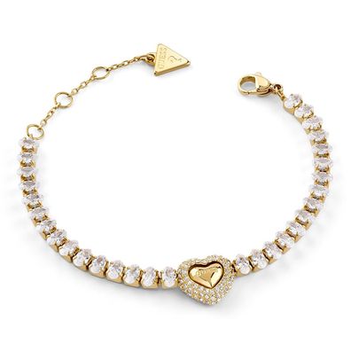 • Guess Schmuck Damen-Tennisarmband Herz Goldfarben JUBB06093JWYGS