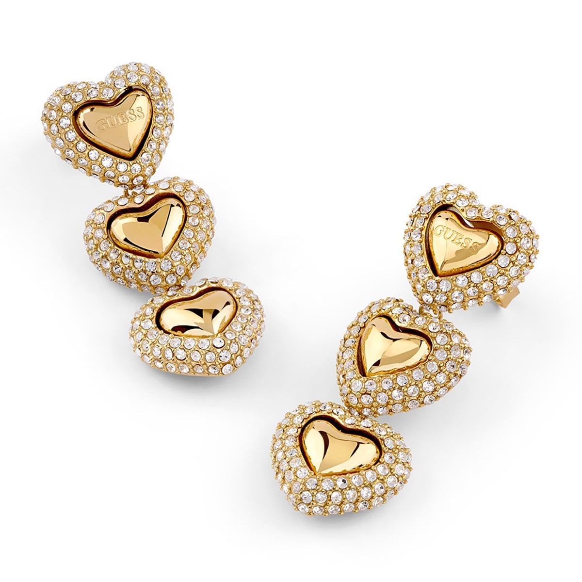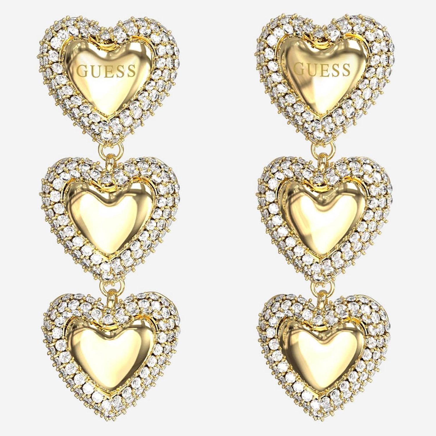 Guess Guess Schmuck Damen-Ohrringe Ohrhänger Herz Pavé Goldfarben 36 mm JUBE06011JWYGT/U
