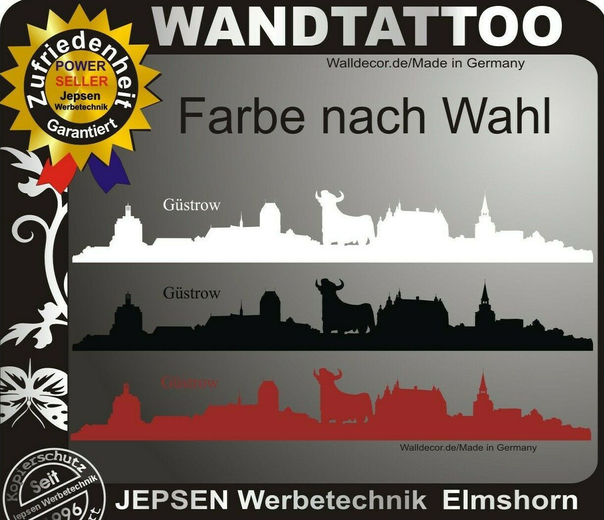 Güstrow Skyline Wandtattoo Aufkleber 100x14cm Güstrow Schloss Dom G1 (Gr. 100x14cm)
