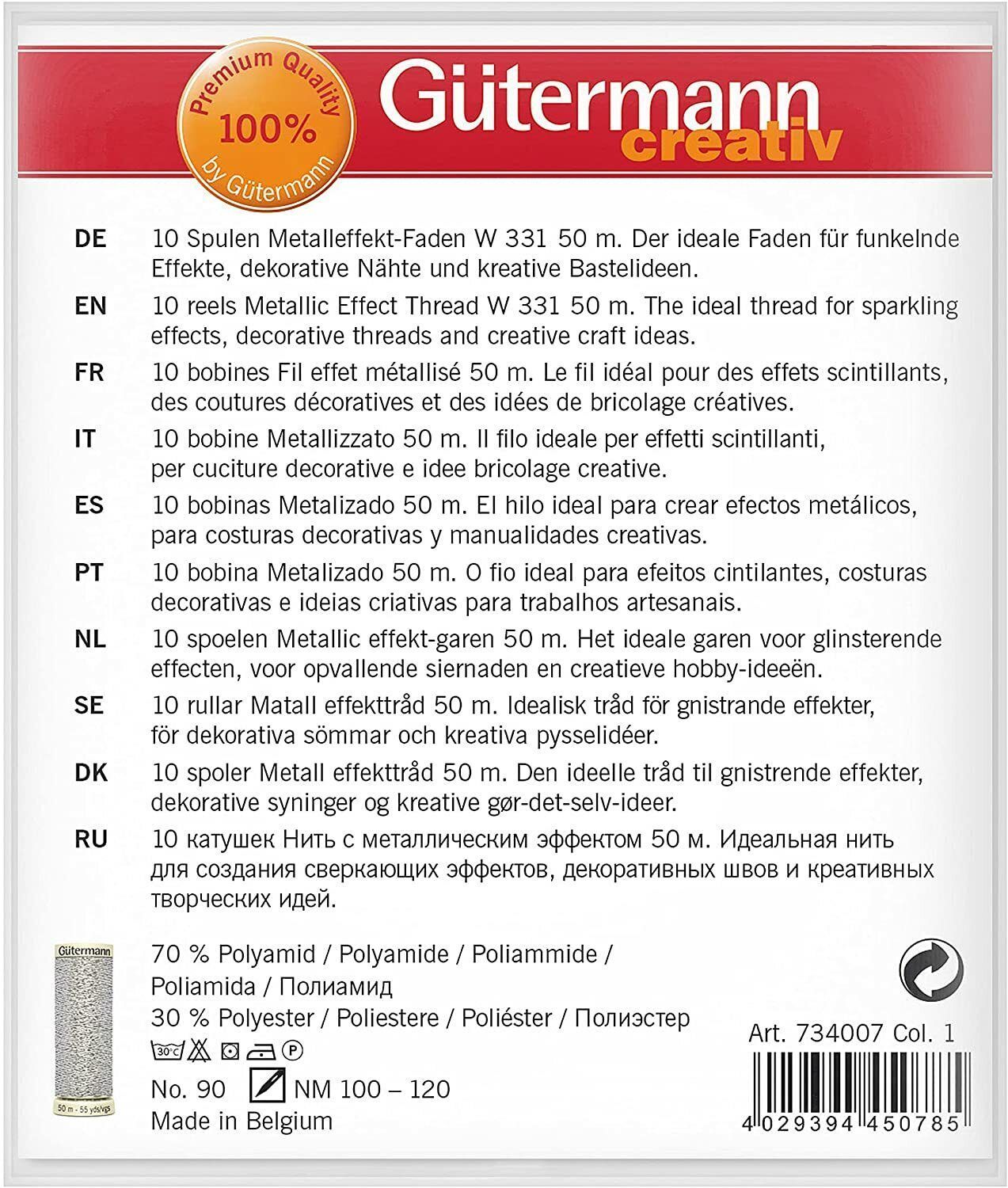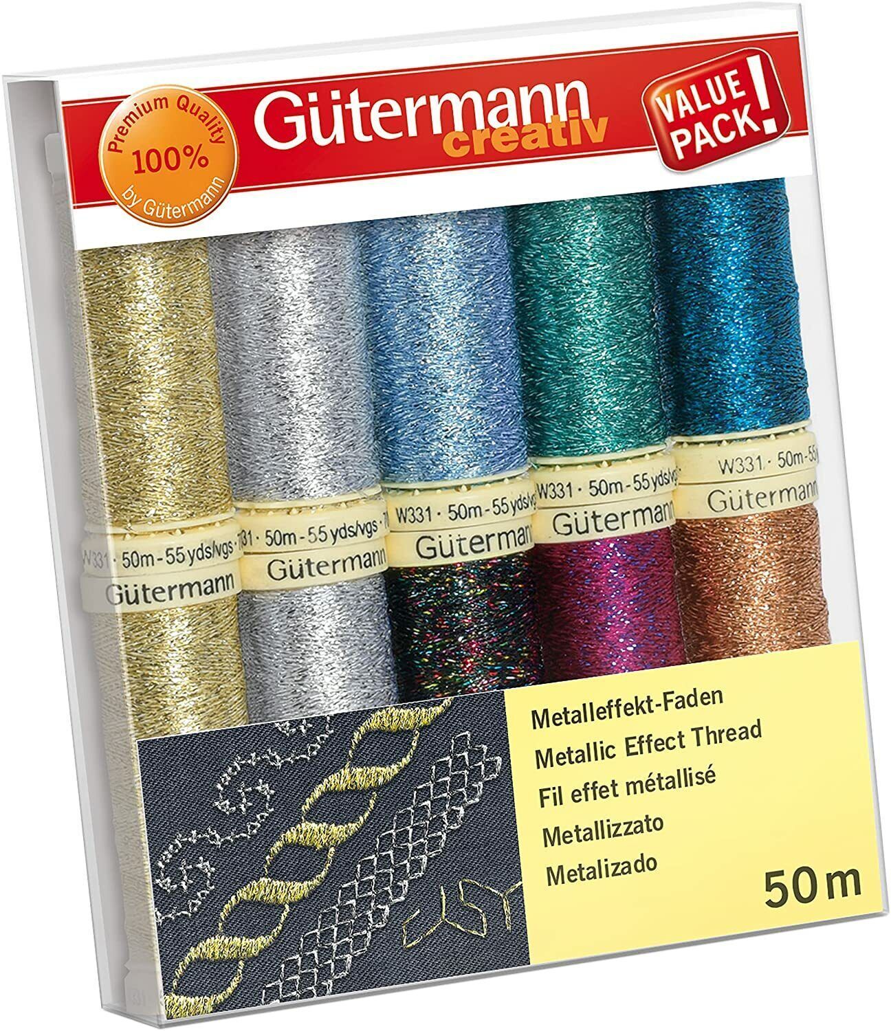 Gütermann 734007 Metalleffekt - Faden - Set, 10 x 50 m, Nähfaden, Zierstichfaden