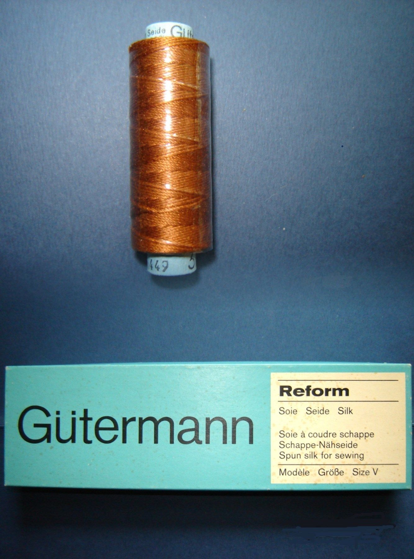 . eine Spule Gütermann Schappe Seide Schappe-Näh-Seide Nähseide Stickgarn Effektgarn Steppstich Zierstich> 100% reine Seide , wunderschöne glänzende Qualität OVP z.T in Zellophan verpackt Gütermann S 1003 Reform Stärke 30 3 jede Spule hat 60 meter in Farbe 449 zimt . Bitte sehen Sie sich hier all
