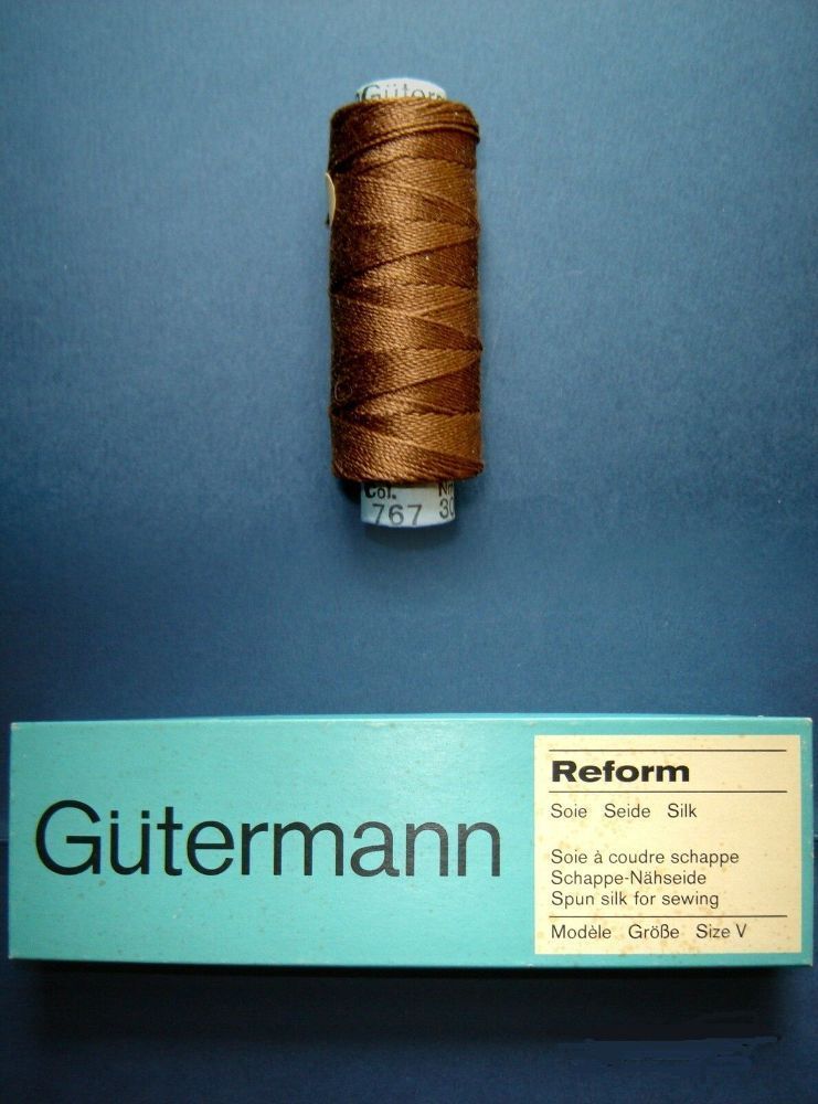 . eine Spule Gütermann Schappe Seide Schappe-Näh-Seide Nähseide Stickgarn Effektgarn Steppstich Zierstich 100% reine Seide , wunderschöne glänzende Qualität OVP z.T in Zellophan verpackt Gütermann S 1003 Reform Stärke 30 3 jede Spule hat 60 meter in Farbe 767 braun . Bitte sehen Sie sich hier alle m
