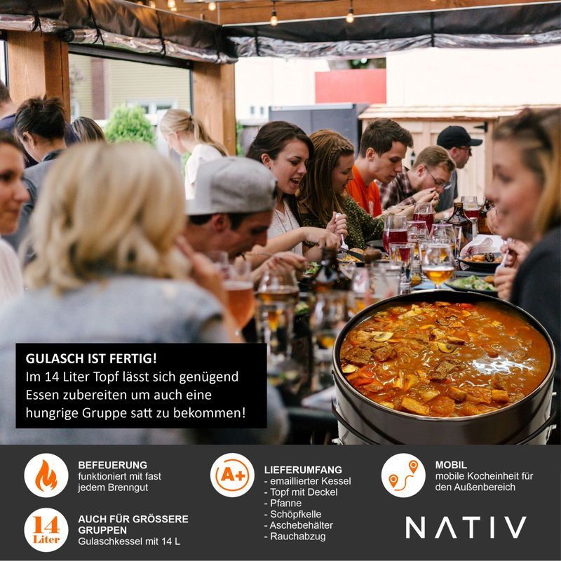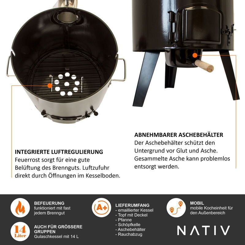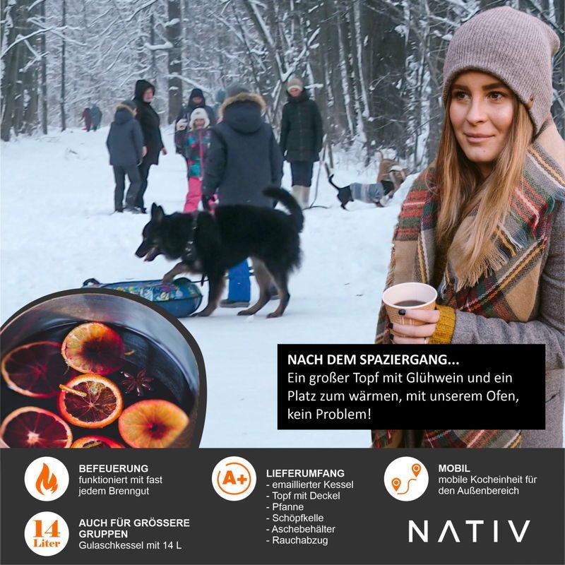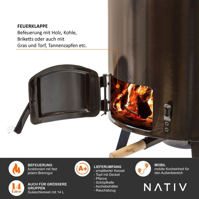 Gulaschkanone, Raketenofen mit Gulaschtopf, Glühweinkocher mit Suppenkelle