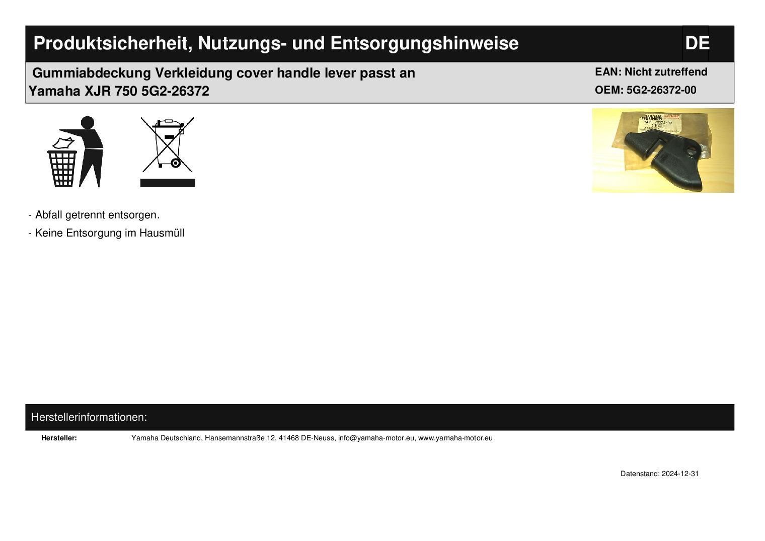 Gummiabdeckung Verkleidung cover handle lever passt an Yamaha XJR 750 5G2-26372 In dieser Auktion gibt es folgenden Artikel zu kaufen: originale Abdeckung (siehe Foto) Modell: passend für Yamaha XJR 750 Bj.: 82 - 83 Lieferumfang: siehe Foto Artikelzustand: neu aus Geschäftsauflösung, mit leichten La