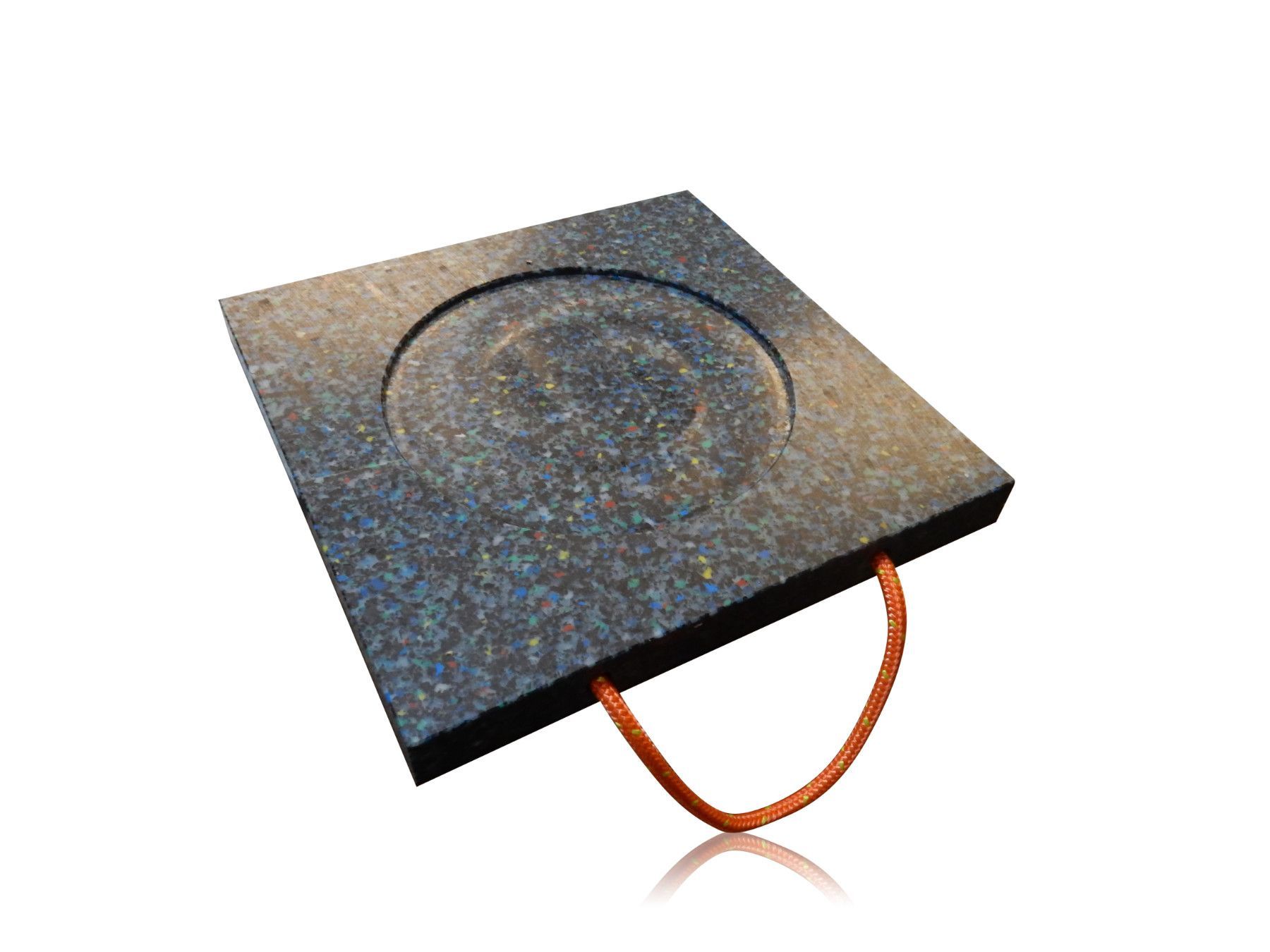 Gummierte Abstützplatte/ Unterlegplatte mit Kreisausfräsung (BxHxT) 400x400x40