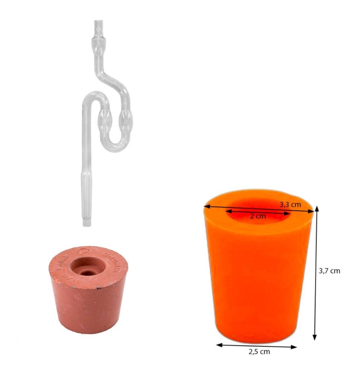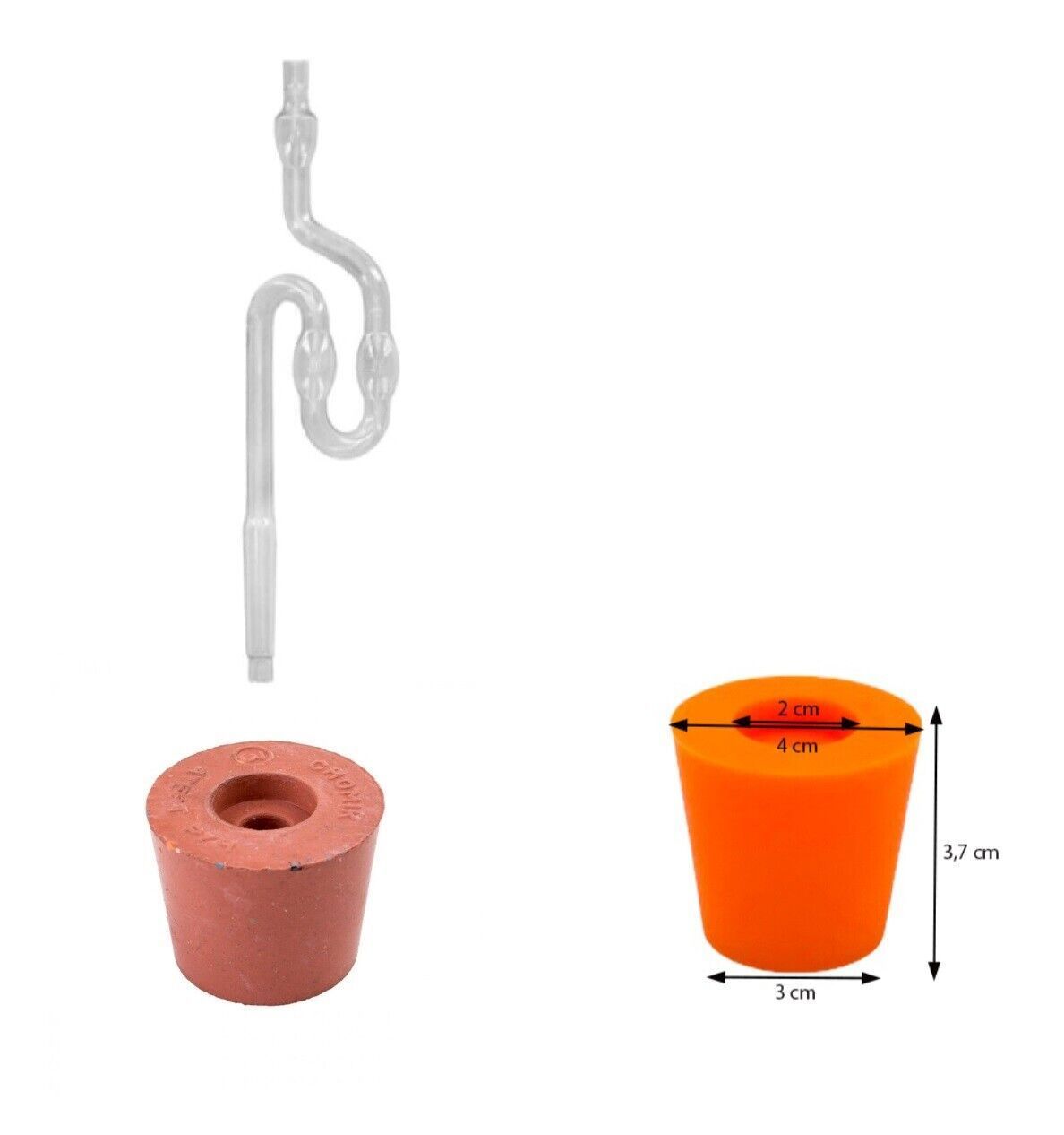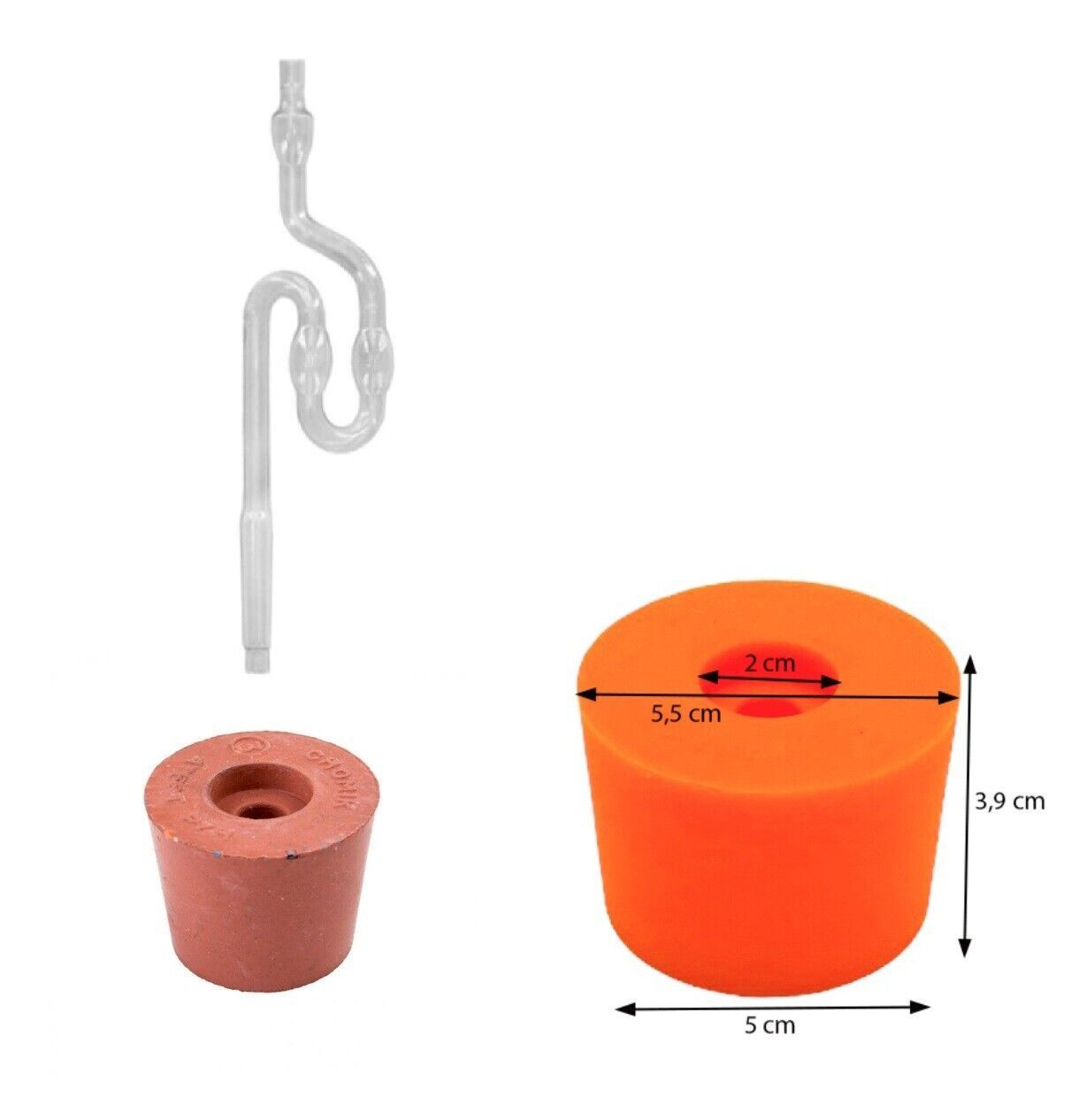 Gummistopfen + Gärrohr Gummikorken Gärspund Weinballon Stopfen Gäraufsatz ROT