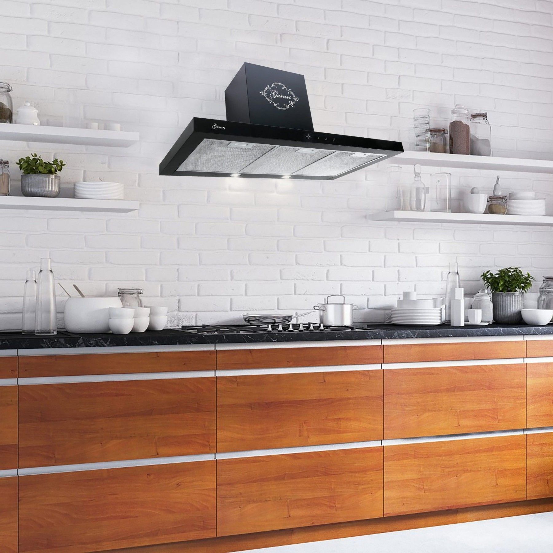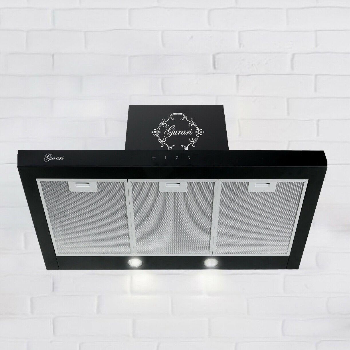 GURARI Wandhaube GCH 462 BL 9 Prime inkl. Umluftset, Dunstabzugshaube 90cm, Schwarz Glas, EEK A, 1000m³/h, Fernbedienung, Wandhaube