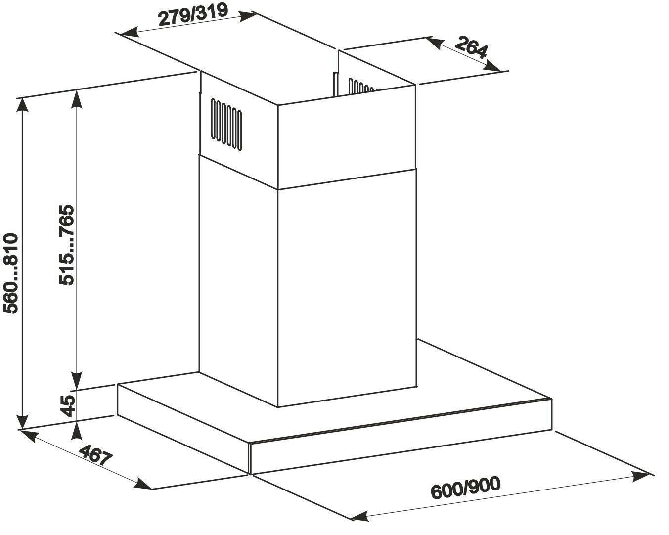 Gurari 462 BL 9 Prime inkl. Umluftset Dunstabzugshaube 90 cm 1000m³/ h Wandhaube