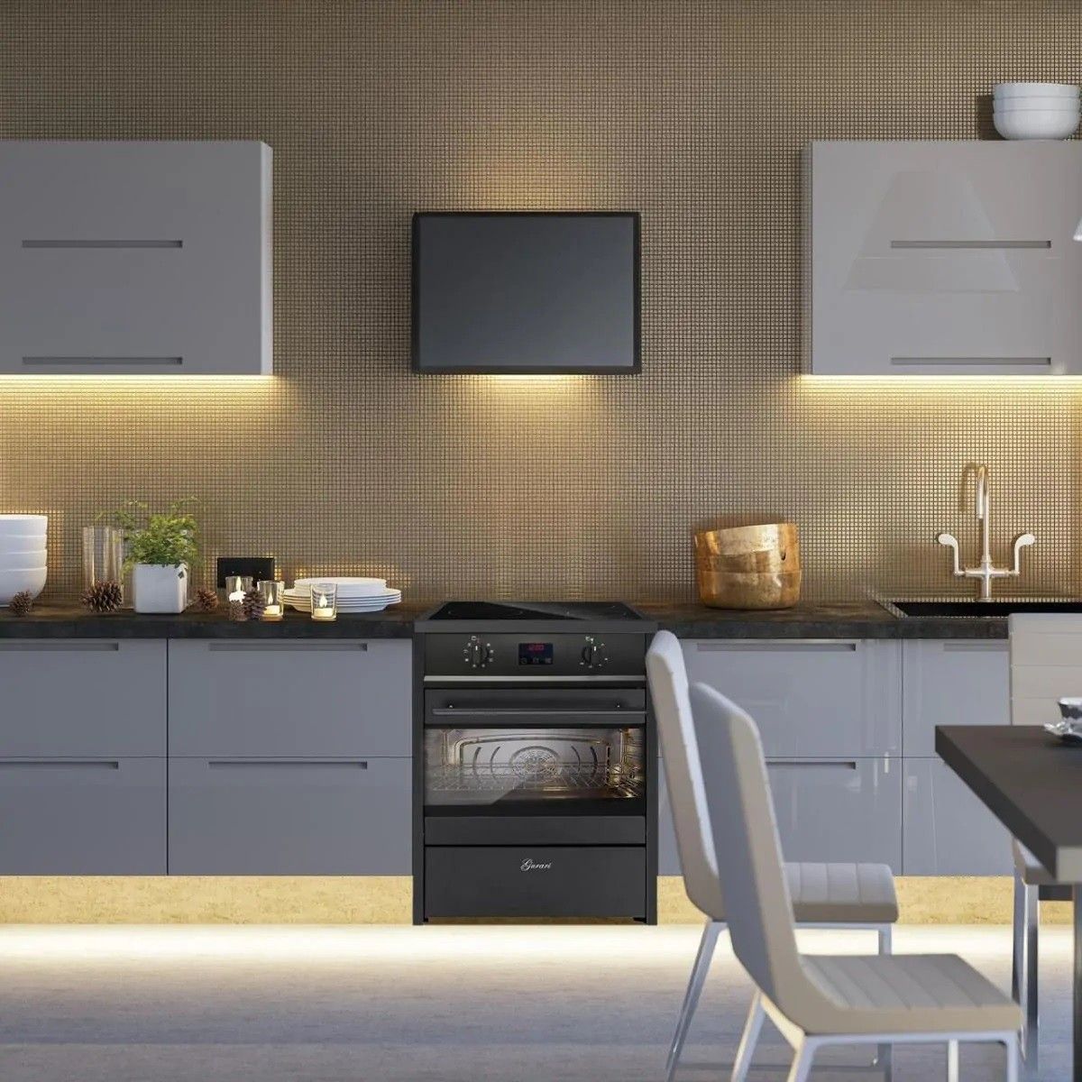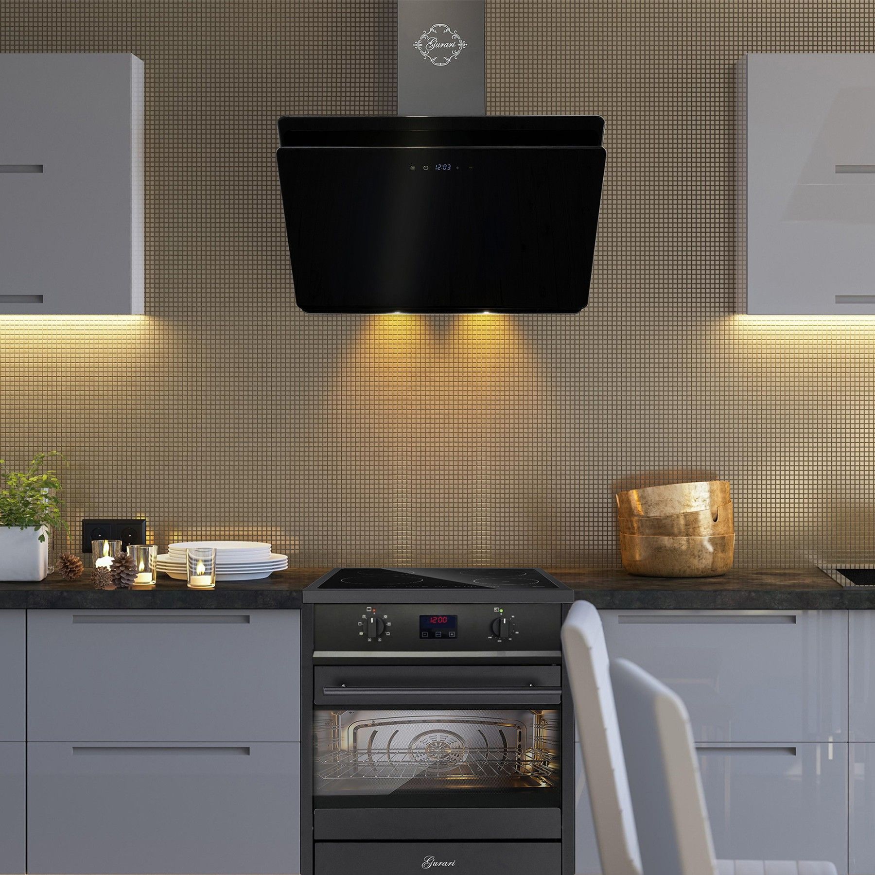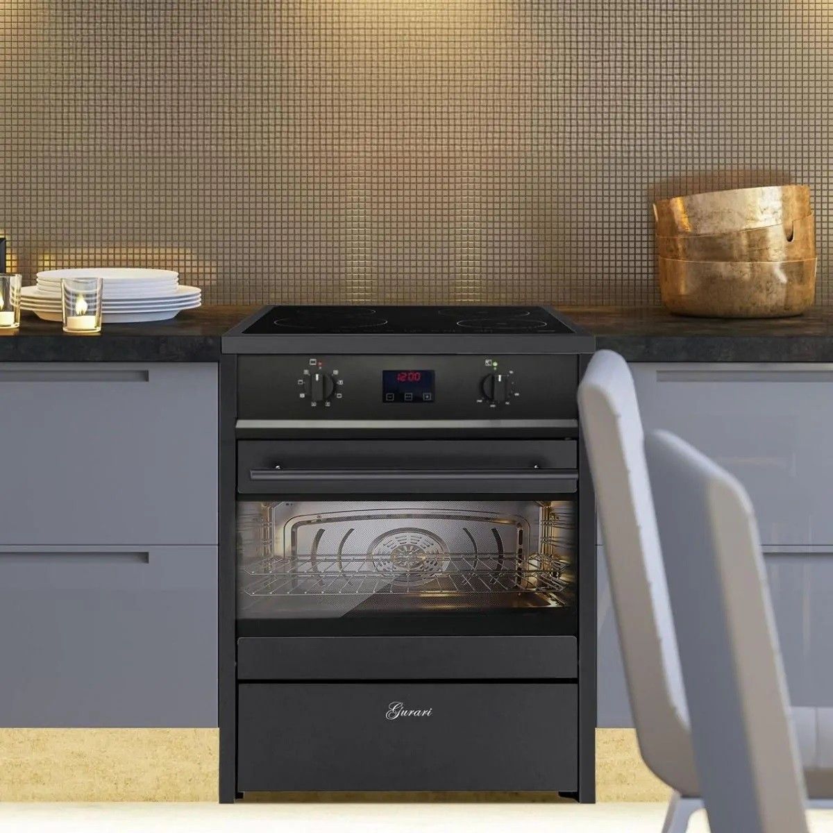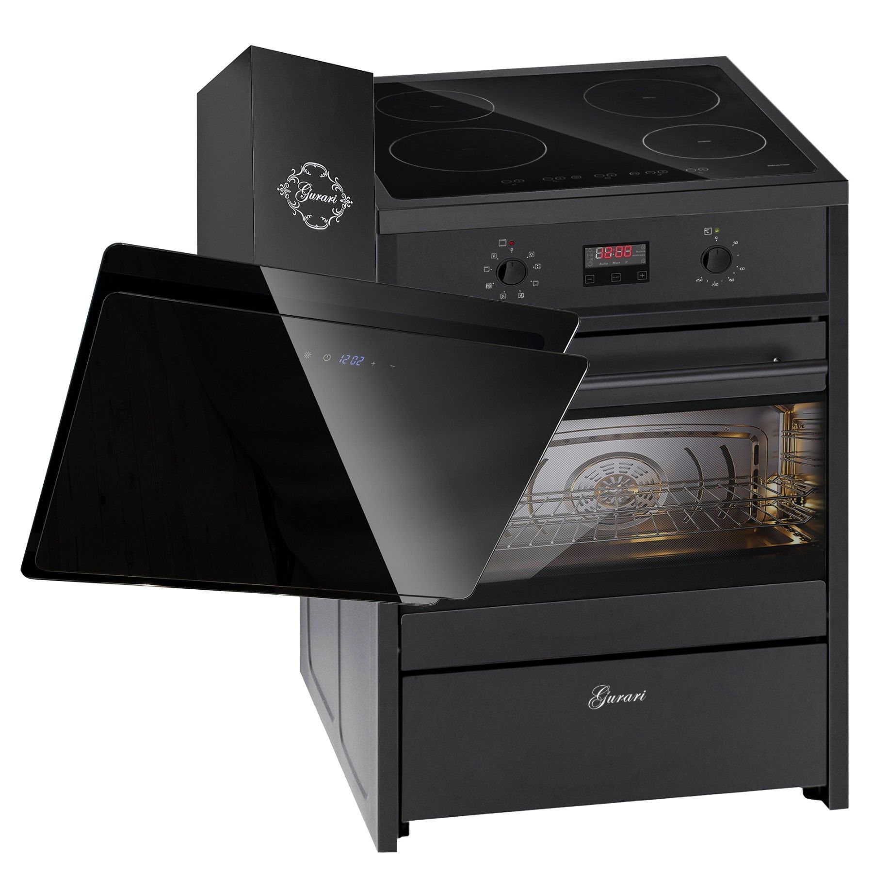GURARI GCH E 612 BL Induktions Standherd 60 cm + Dunstabzugshaube 60 cm GCH 411 60 BL PRIME N
