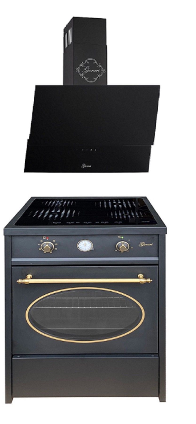 GURARI GCH E 612 BL r Induktions Standherd 60 cm, Retro , Schwarz, Range Coocker+GURARI Kopffreihaube GCh 268 Bl 6 Prime/ 19, Dunstabzugshaube 60 cm Wandhaube, Effizient, Schwarz Glas