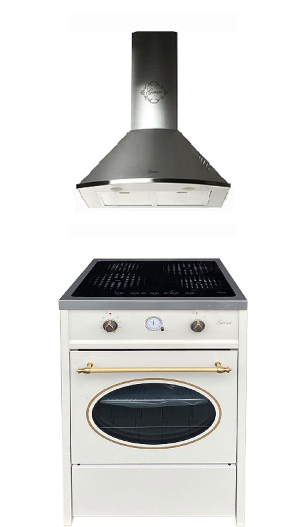 GURARI Induktions-Standherd GCH E 612 Cr r+GCH 046 IS 6, Retro Induktions Standherd 60 cm/ Range Coocker / 60 L /Creme/ 8 Funktionen / Heißluft/ Grill/ 4 Kochzonen/ 4x Booster/Teleskopauszug+Dunstabzugshaube 60 cm,/ Edelstahl/ Saugstark 1000m³/h/ 3 Stufen/ Abzugshaube/ Ablufthaube/ Umlufthaube
