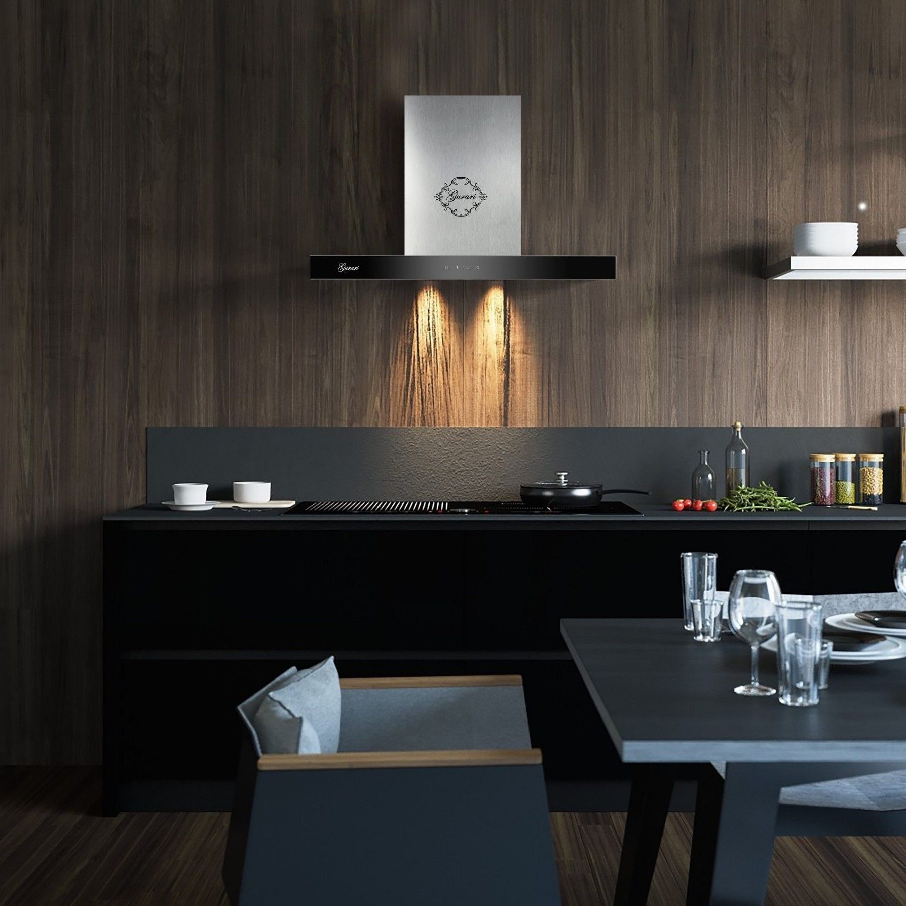 GURARI Gas-Standherd GCH E 911 R+GCH F 462 IS 9 Prime, Gas Elektro Standherd 90 cm/ Range Coocker / 121L / 8 Funktionen / Heißluft/ Grill/ 5 Hochwertige Brenner/ 4 kw WOK/ Erdgas / Propangas/Edelstahl/Inkl. WOK Adapter+Dunstabzugshaube 90 cm/Aus Edelstahl/ Schwarz Glas Blende/ 1000m³/h/ 3 Stufen/ Abzugshaube/ Ablufthaube/ Umlufthaube