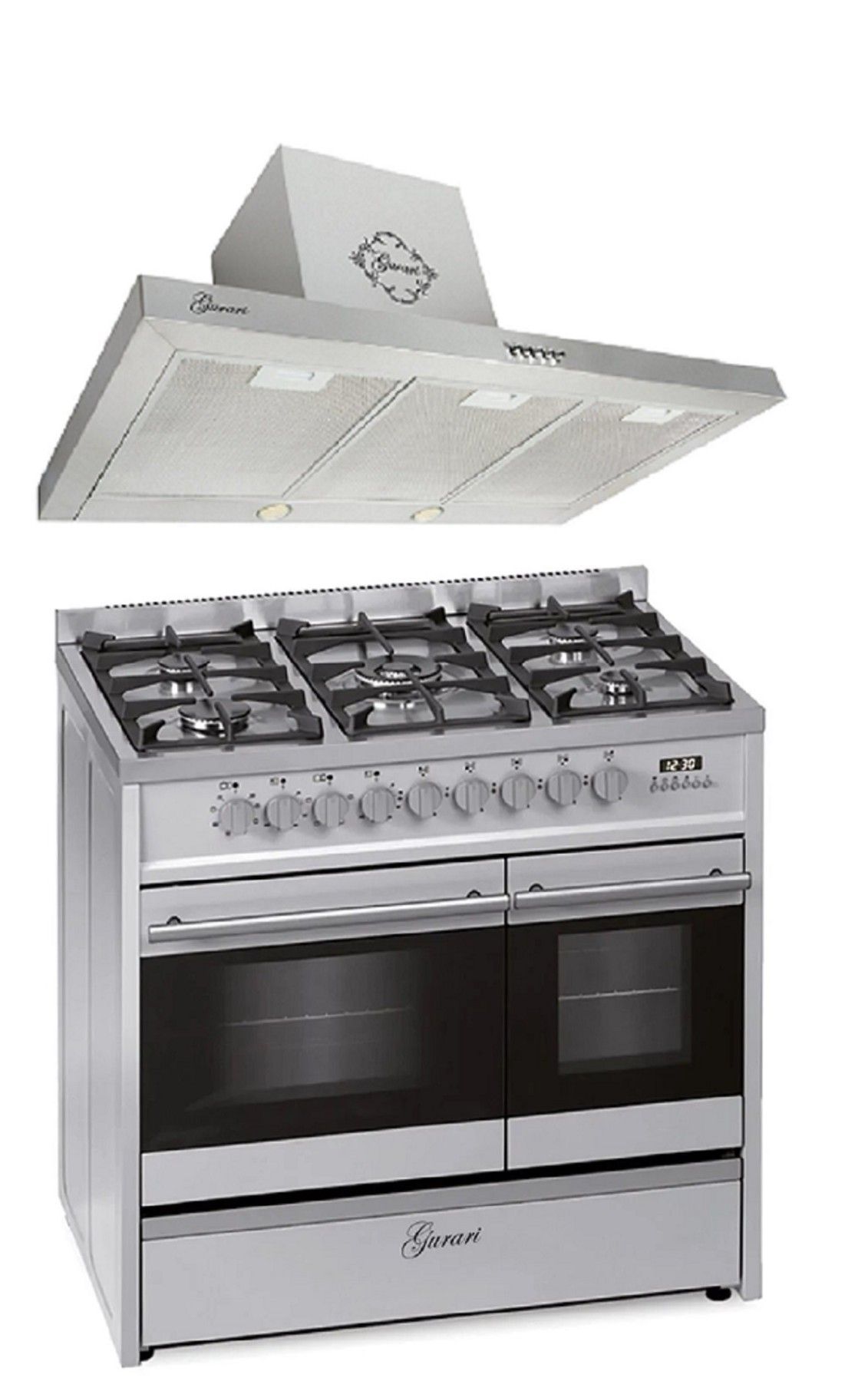 GURARI Gas-Standherd GCH E 916 X+GCH 461 IS 9, Gas Elektro Standherd 90 cm/ Range Coocker / 89L / 8 Funktionen / Heißluft/ Grill/ 5 Hochwertige Brenner/ 4 kw WOK/ Erdgas / Propangas/Edelstahl/Inkl. WOK Adapter+Dunstabzugshaube 90 cm, 1000m³/h, 3 Stufen, Abzugshaube,Edelstahl Haube,Ablufthaube,Umlufthaube