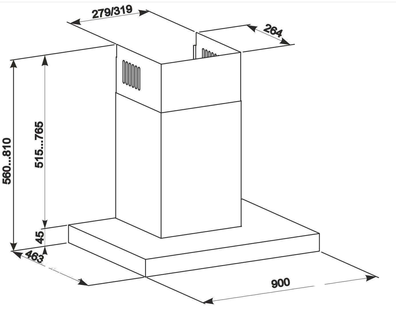 Gurari GCH F 461 IS 7 + Abluftschlauch Dunstabzugshaube 70cm 1000m³/ h Wandhaube