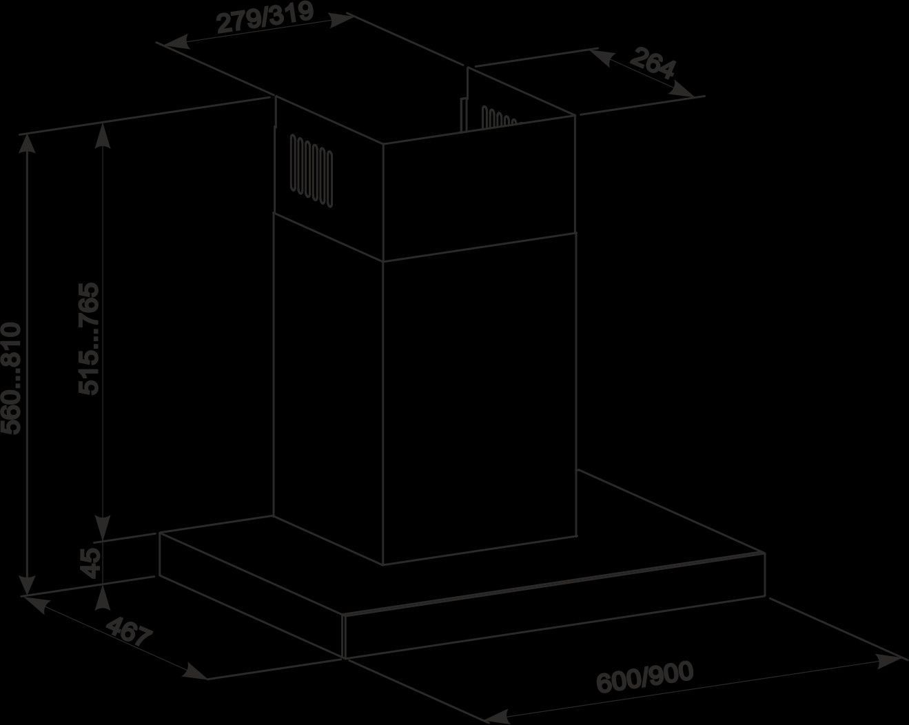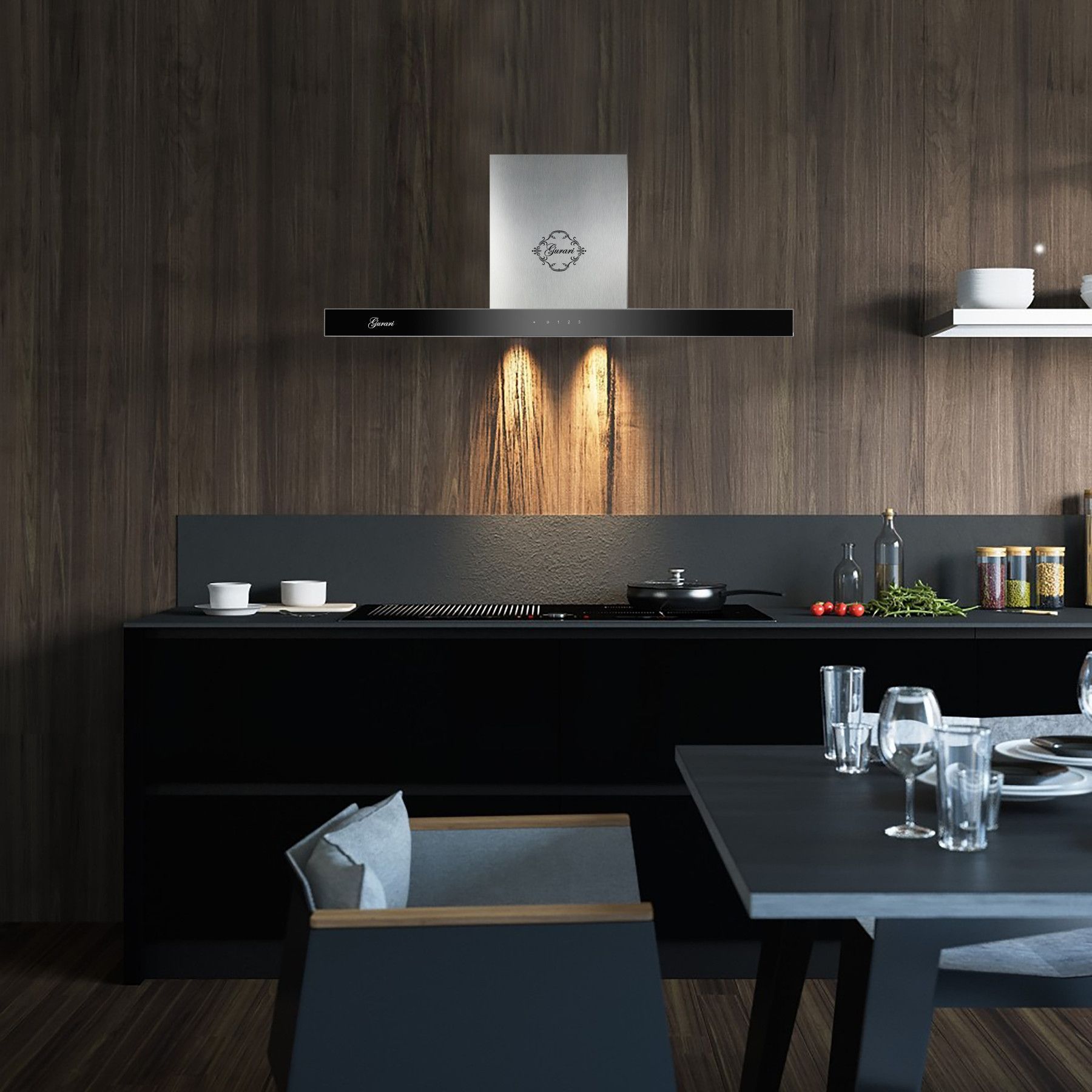 Gurari GCH F 462 IS 9 Dunstabzugshaube 90cm 1000m³/ h Wandhaube Schwarz Glas