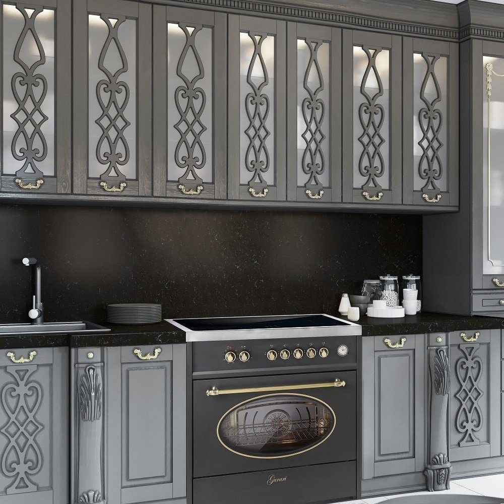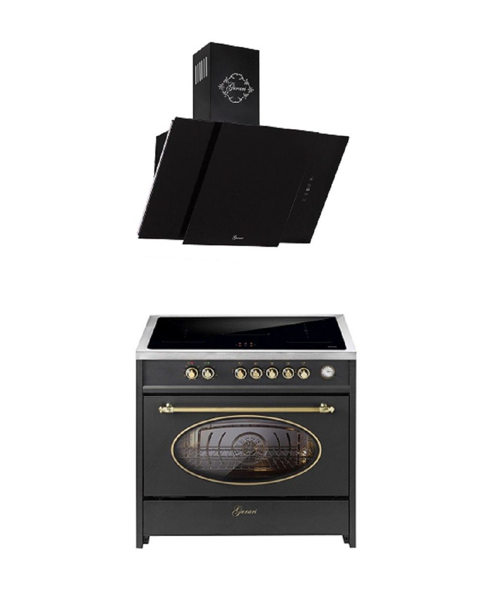 GURARI Induktions-Standherd E 913 RU BL+GCH S 171 90 BL PRIME, Retro Range Cooker 90 cm/ 121L+Dunstabzugshaube 90 cm