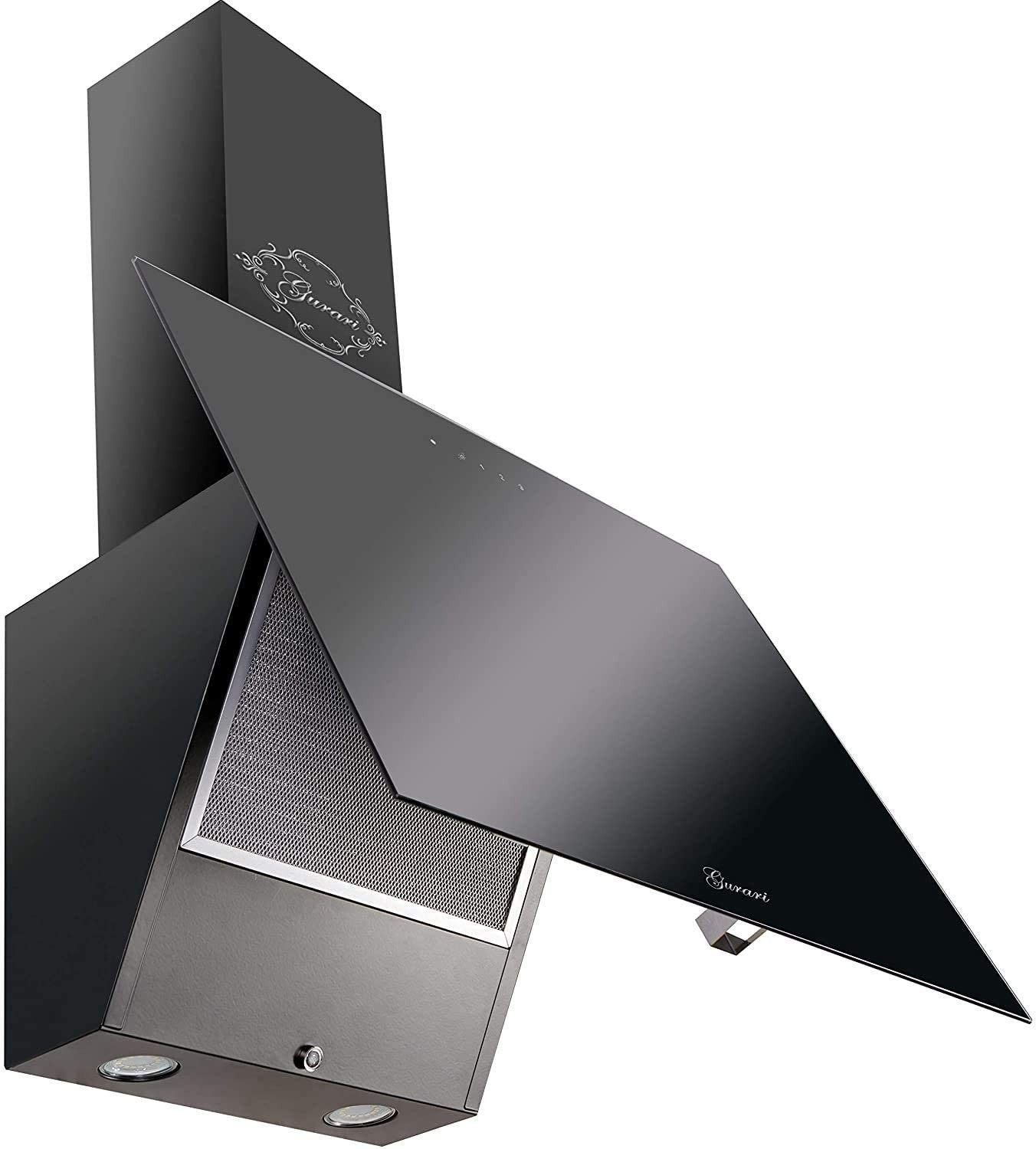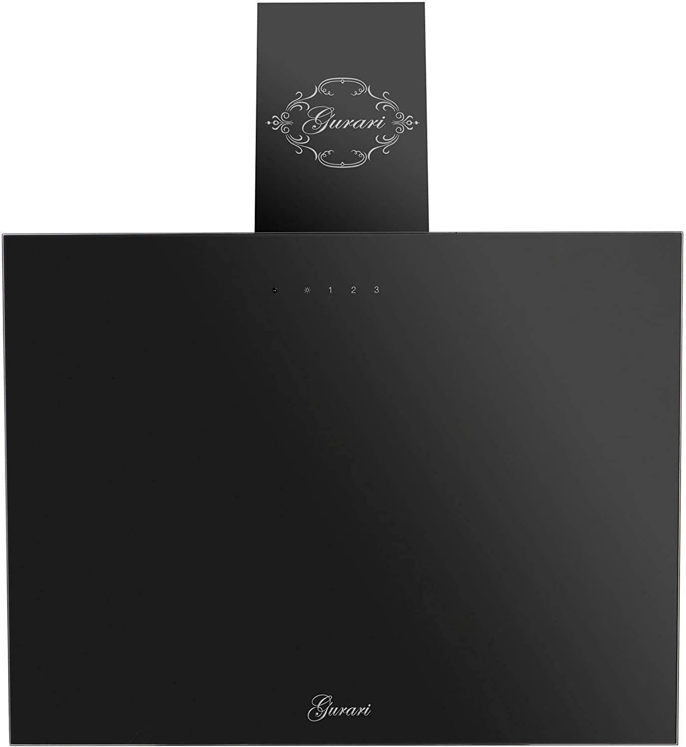 GURARI Kopffreihaube GCH 286 BL 9 Prime, Dunstabzugshaube 90cm, 1000m³/h Wandhaube, Schwarz Glas, TouchControl,Fernbedienung,Timer,EEK A [Energieklasse A]