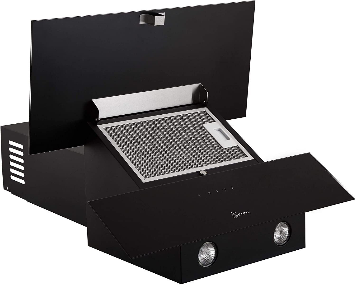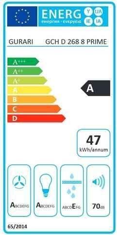 GURARI Kopffreihaube GCH D 268 8 Prime, Dunstabzugshaube 80cm, Schwarz Glas, EEK A