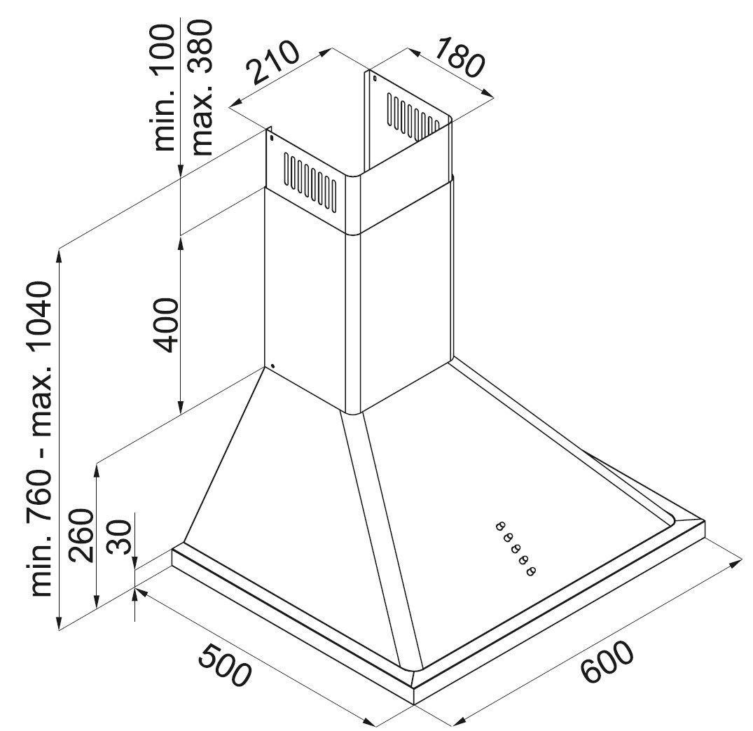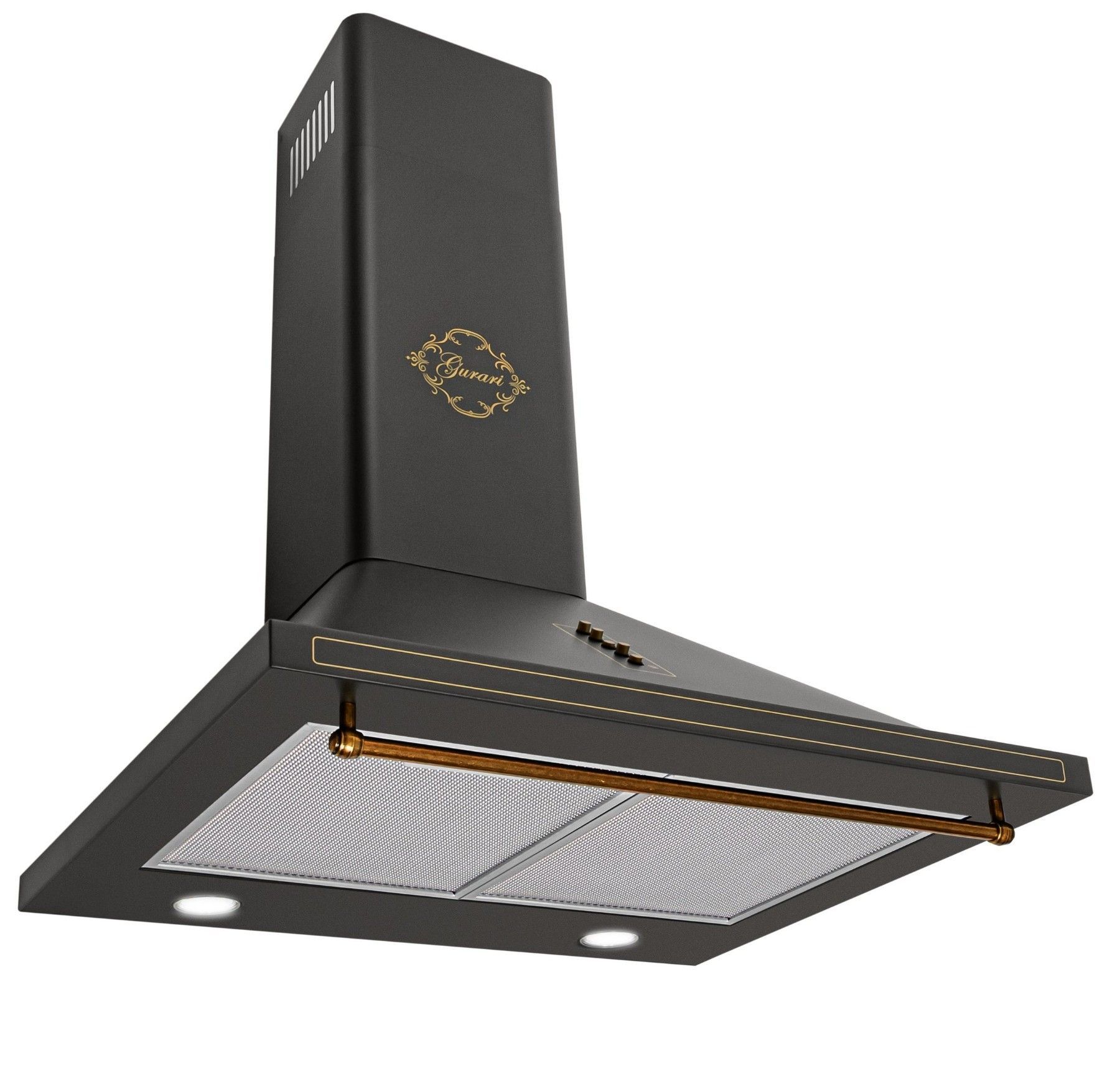 GURARI Wandhaube GCH 975 Bl 6, Retro Dunstabzugshaube 60cm, 850m³/ h, Schwarz