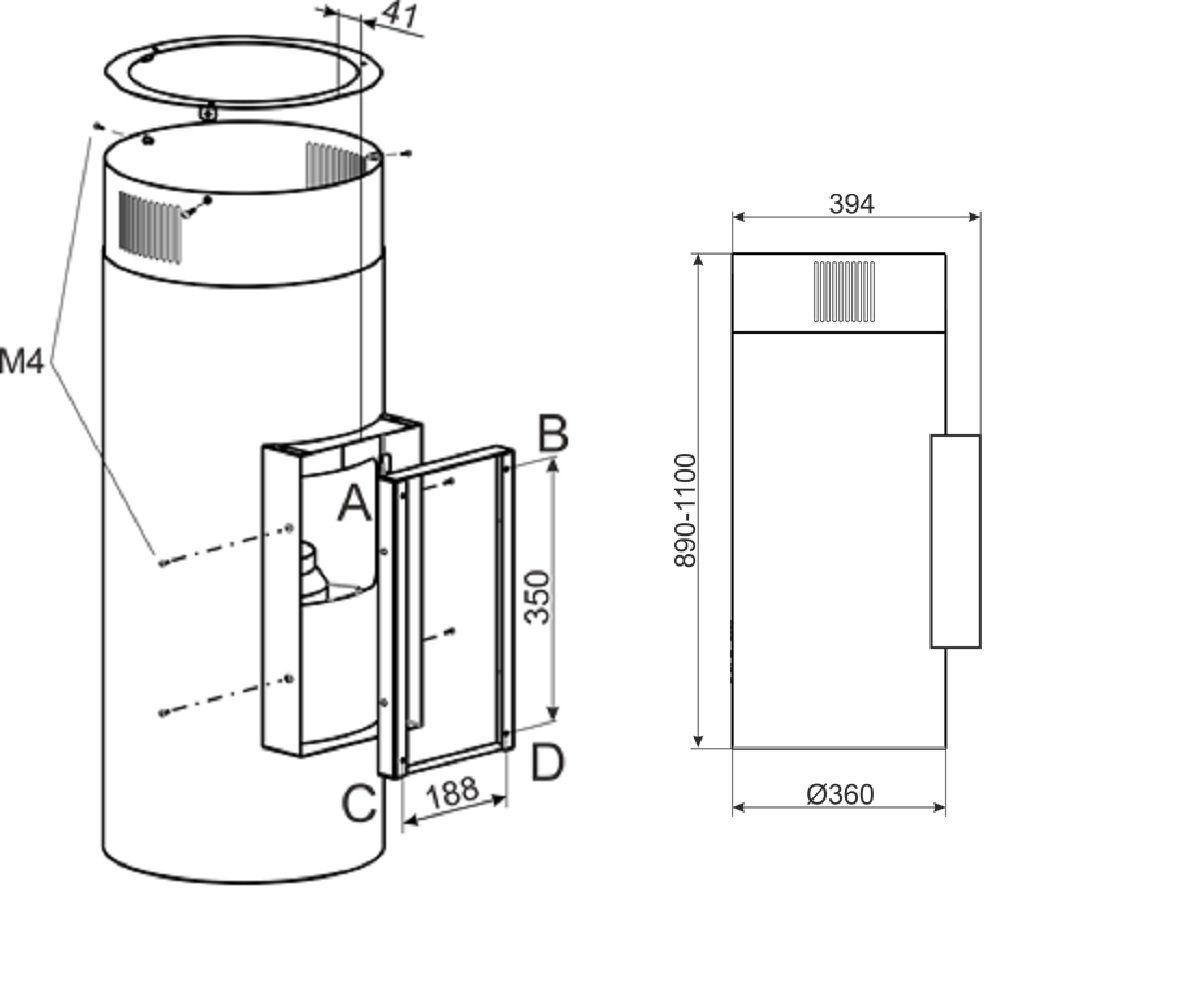 GURARI Wandhaube GCH V 380 36 BL PRIME, Runde Dunstabzugshaube 36 cm, Schwarz, 1000m³