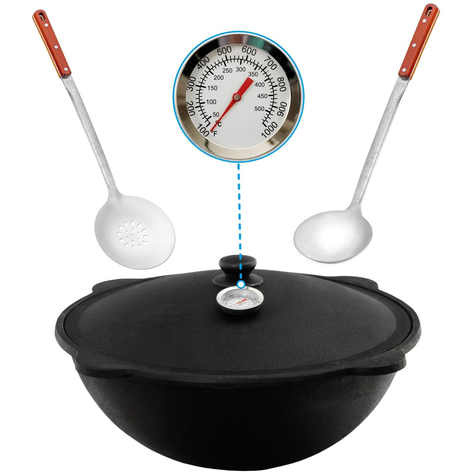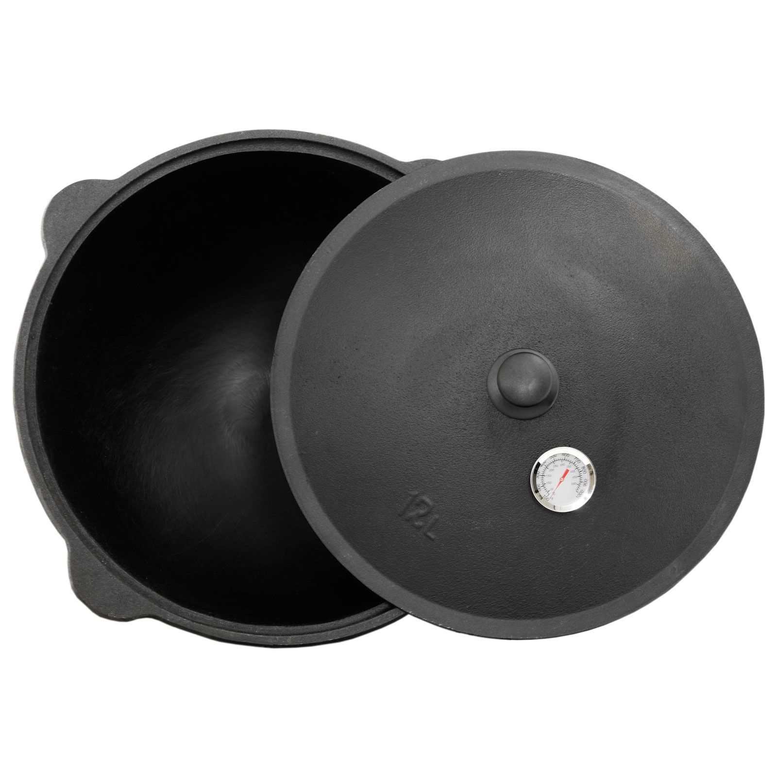 Gusseisen Kasan 12L rund Namangan Alum. Deckel inkl. Schaumkelle, Schöpflöffel