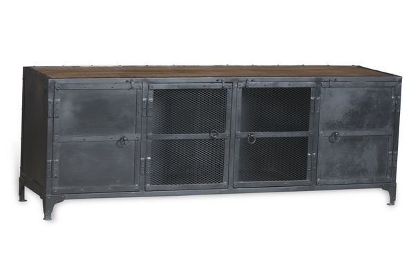 Gusseisen-Optik Holz INDIA Lowboard fuer TV Fernseher Flachbild