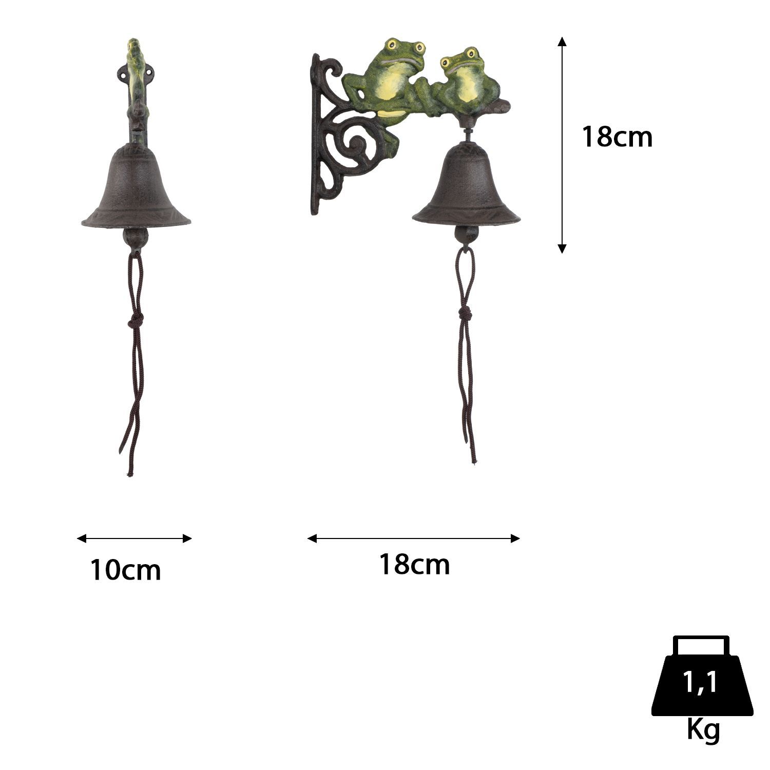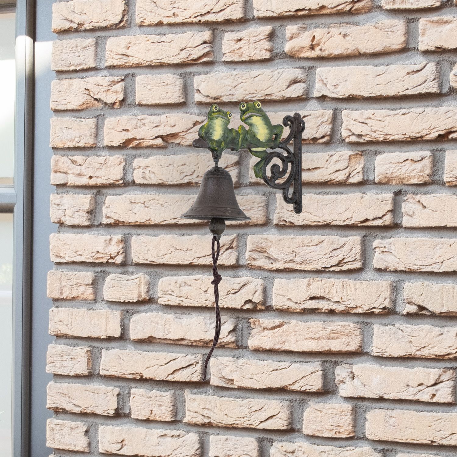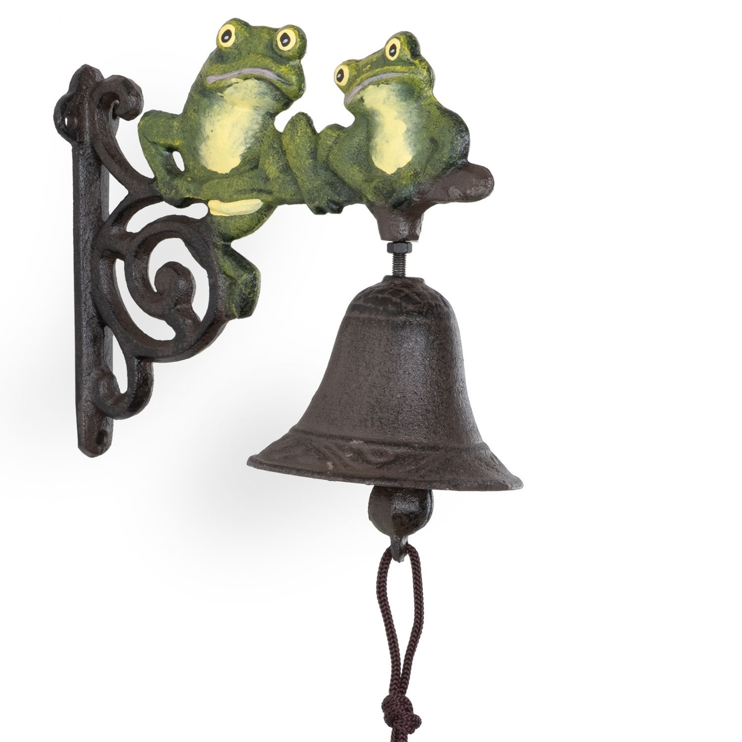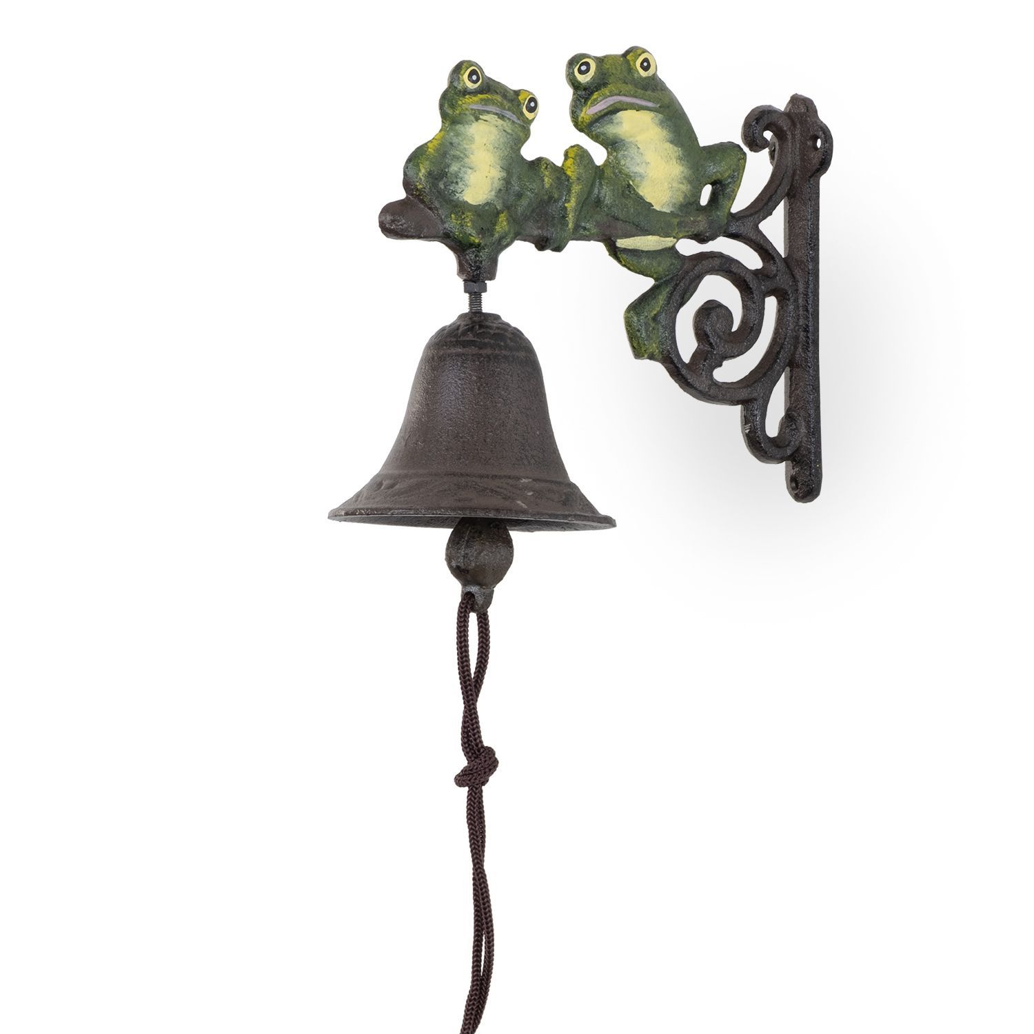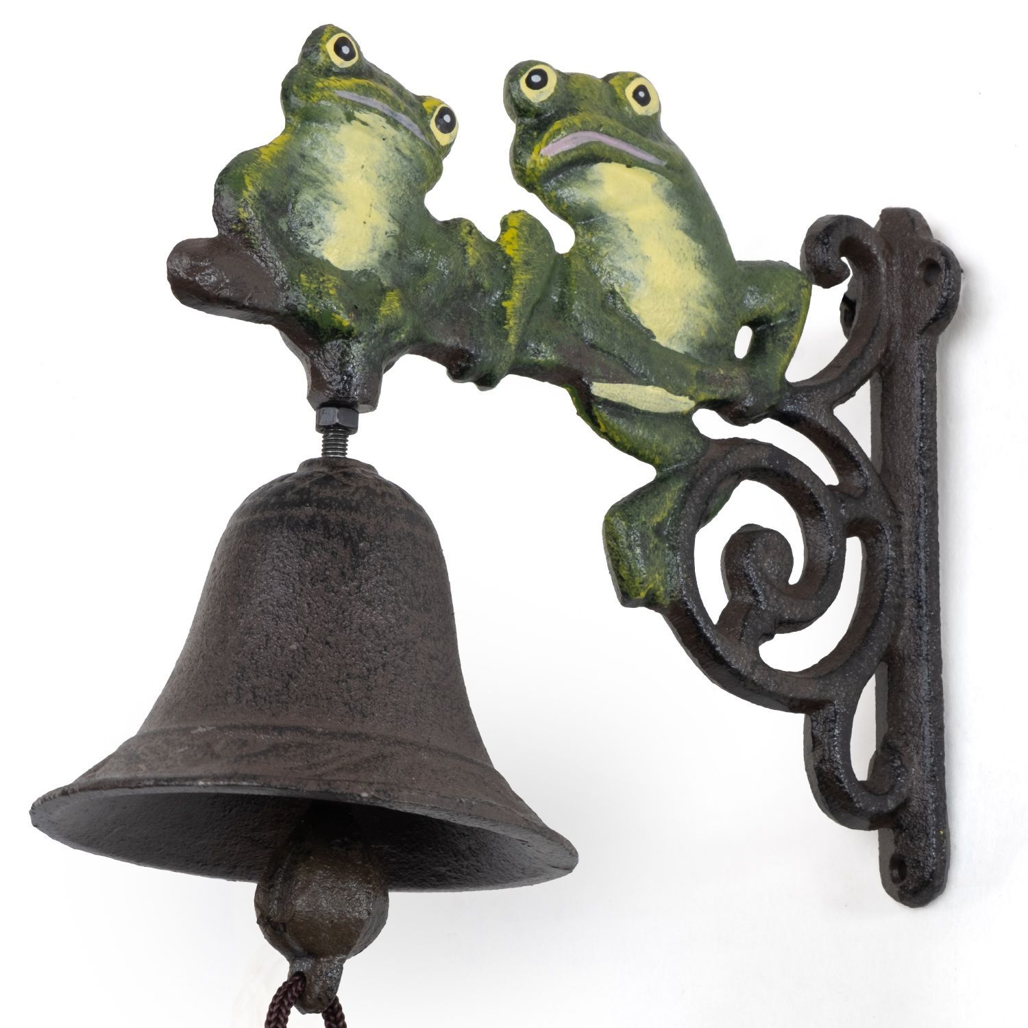 Gusseisen Türglocke mit zwei Fröschen - Wandglocke in Grün und Braun - wetterfeste