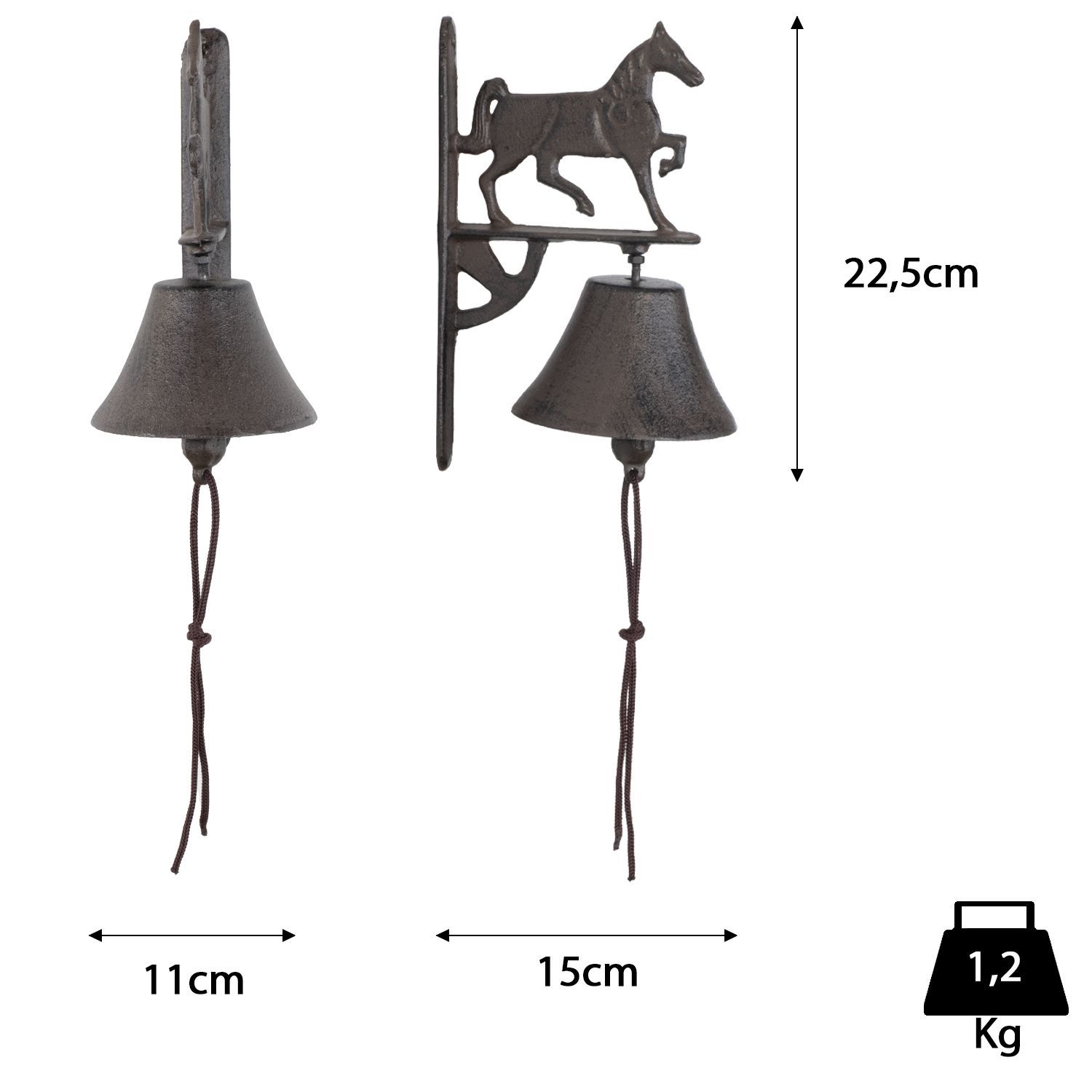Gusseisen Türglocke Pferd Motiv antik braun Wandglocke Landhausstil Vintage Glocke