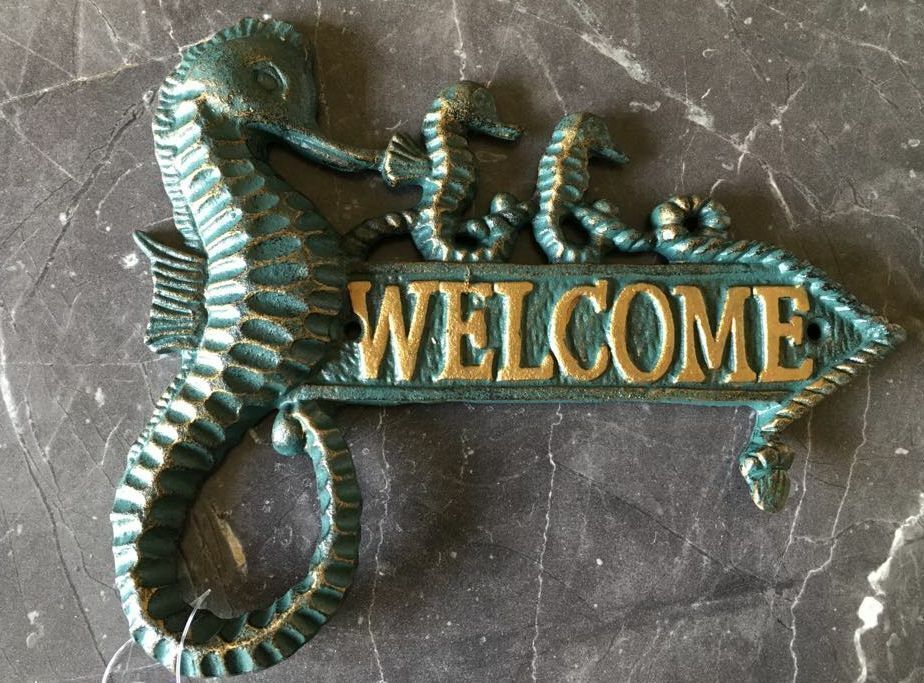 gusseisernes Welcome Schild Willkommen Seepferdchen Deco Nautik Maritim cool !
