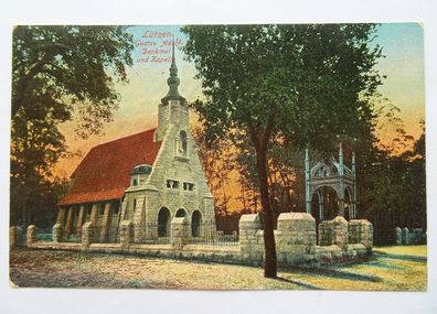 • AK Lützen - Gustav Adolf Denkmal und Kapelle Gelaufen. 1916