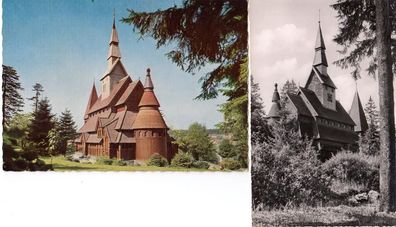 • 2 AK Hahnenklee Bockswiese Harz Gustav-Adolf-Kirche Nordische Stabholzkirche