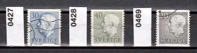 • H983 - Schweden Mi. Nr. 427 A + 428 A + 469 A König Gustav VI. Adolf o